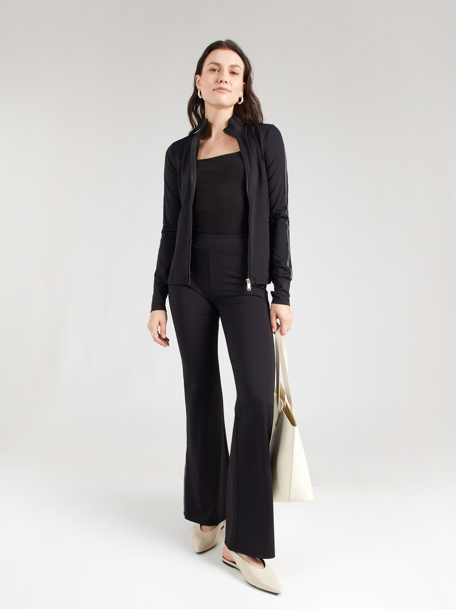 Design: Tiv/ margine tighelită, Manșete cu striații, Buzunare laterale cu fermoar; Tip de închidere: Fermoar; Material: Jerseu; Decolteu: Guler tunică; Imprimeu: Cu logo imprimat; Detalii: Dungi laterale; Detalii: Label Plate, Cusături ton în ton, Material moale; Croi: Croi mulat; Lungime mâneci: Mâncecă lungă; Lungime: Lungime normală