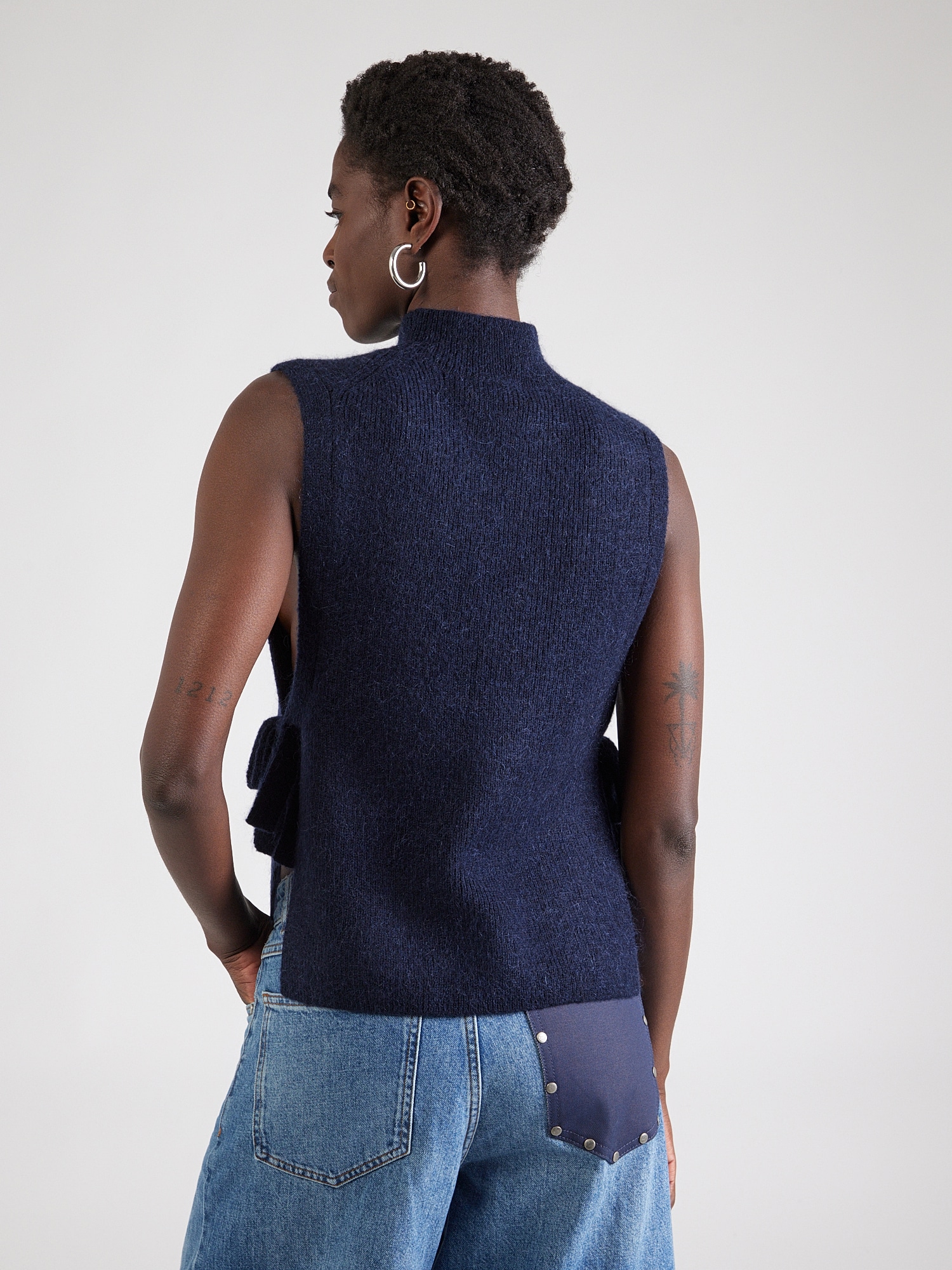 Design: Guler din tricot cu striații, Cu nod/ benzi; Material: Tricot; Decolteu: Guler tunică; Imprimeu: Monocrom; Detalii: Fully fashioned, Cusături ton în ton; Croi: Croi normal; Lungime mâneci: Fără mâneci; Lungime: Lungime normală