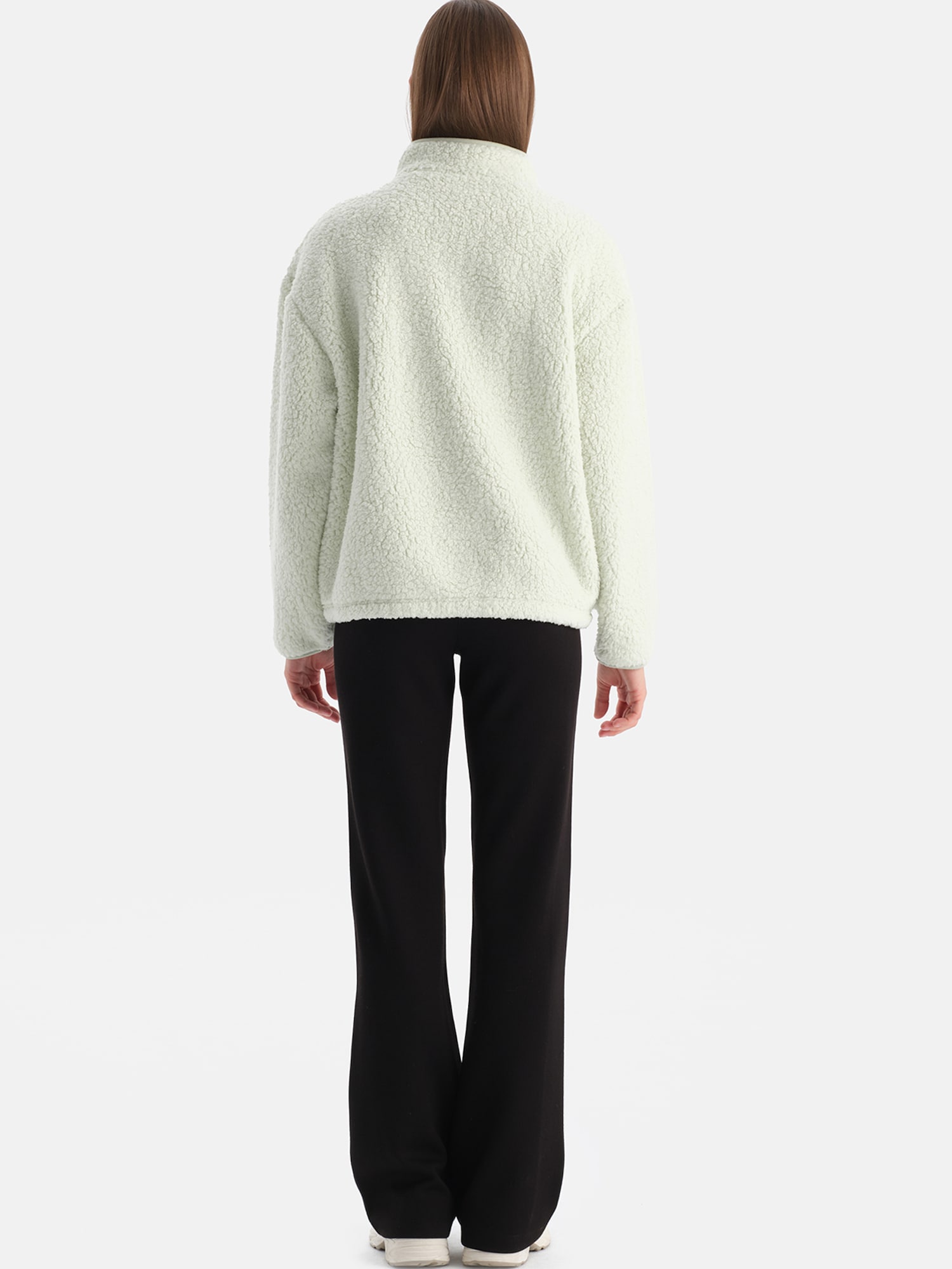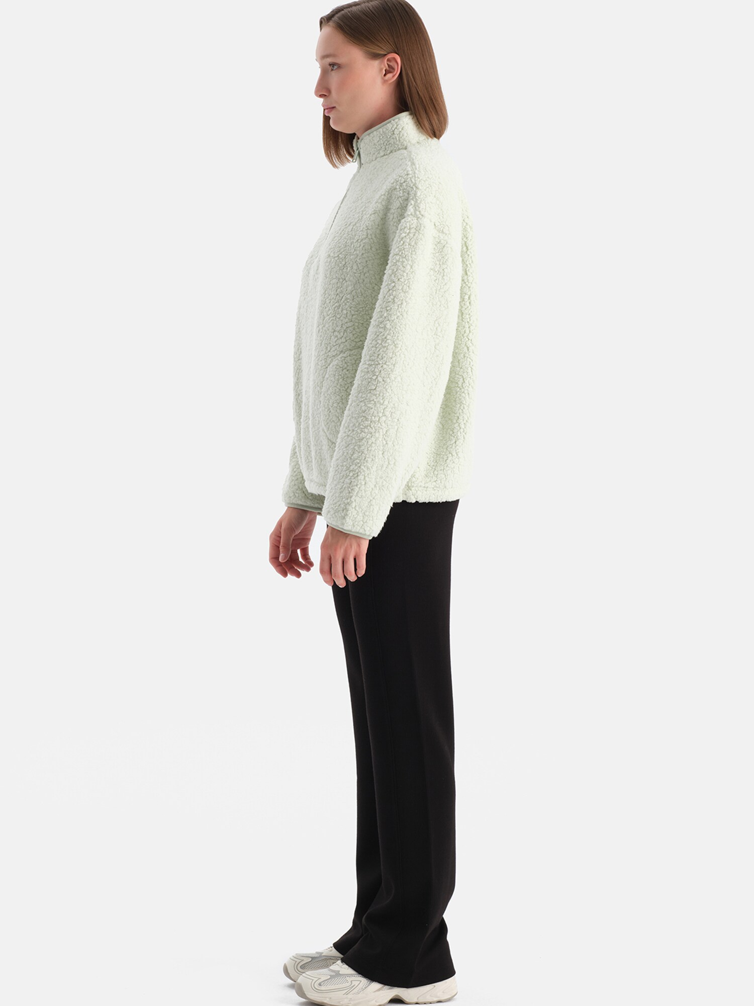 Design: Buzunare laterale deschise, Semifermoar; Tip de închidere: Fermoar; Material: Teddy; Decolteu: Pulover troyer; Imprimeu: Monocrom; Detalii: Material structurat; Croi: Croi lejer; Lungime mâneci: Mâncecă lungă; Lungime: Lungime normală