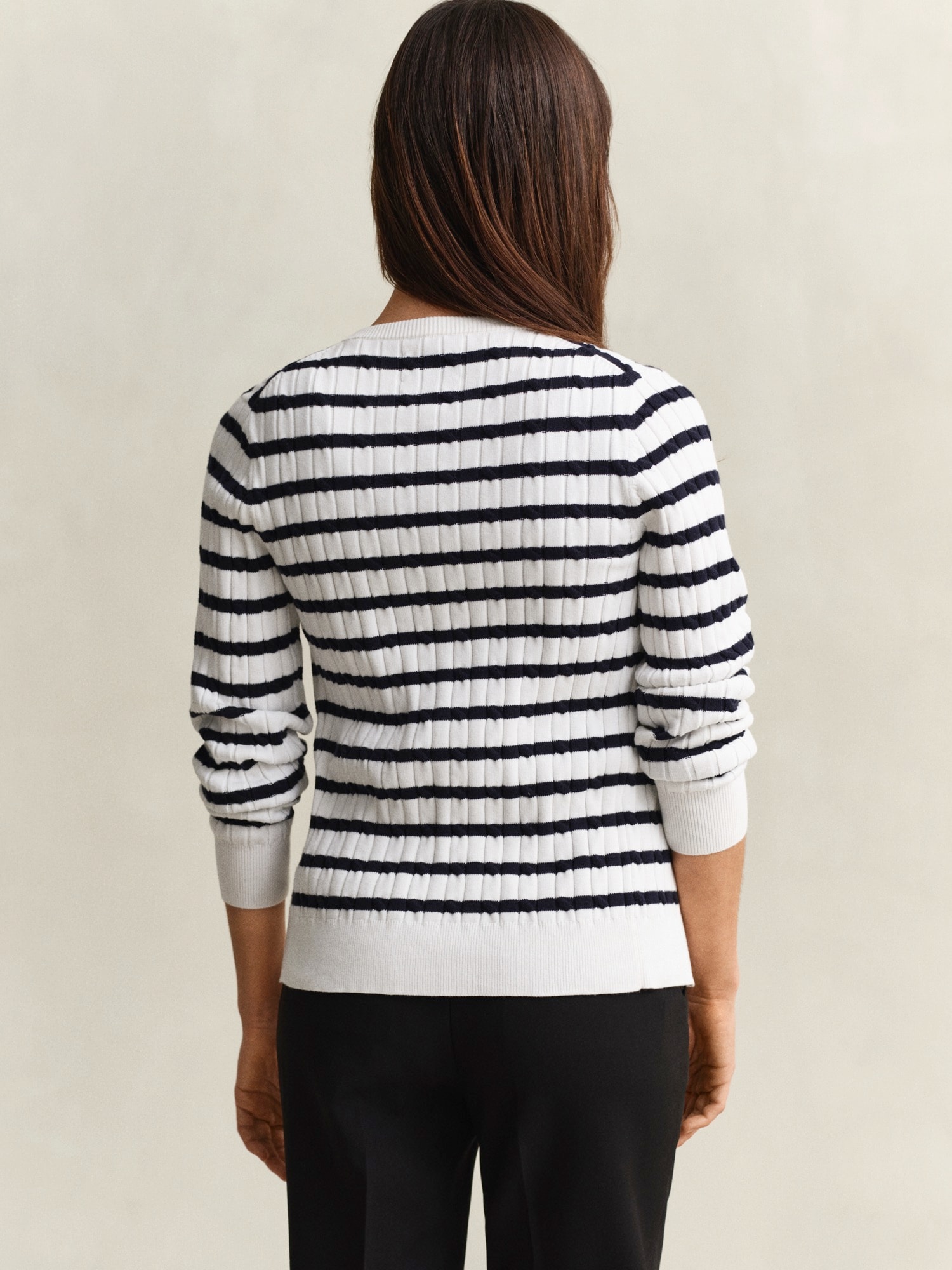 Design: Guler din tricot cu striații, Tiv drept, Șir de nasturi, Manșete cu striații; Tip de închidere: Închidere cu nasturi; Material: Tricot; Decolteu: Decolteu rotund; Imprimeu: Cu dungi; Detalii: Logo brodat, Material structurat, Material moale; Croi: Croi normal; Lungime mâneci: Mâncecă lungă; Lungime: Lungime normală