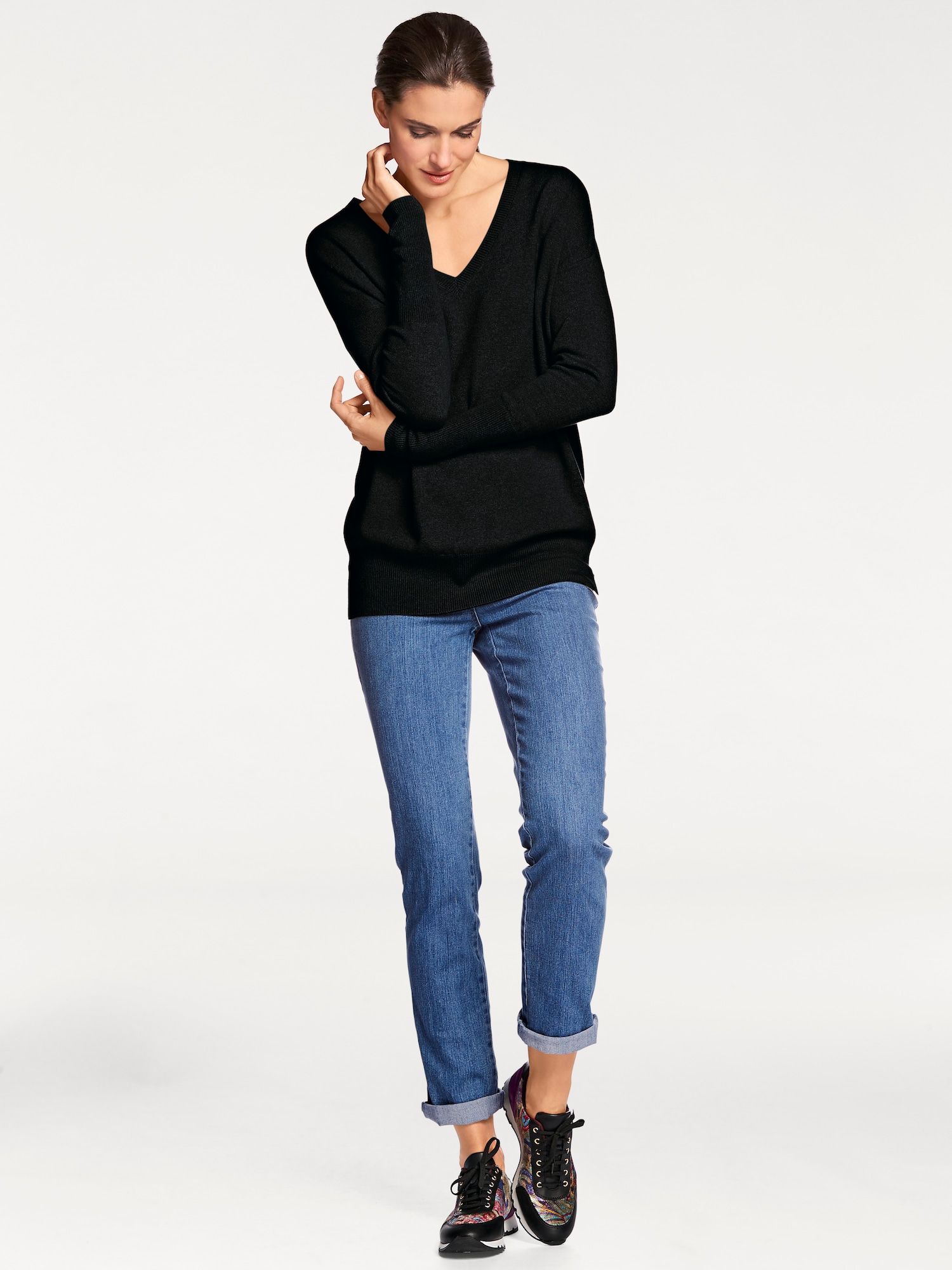Design: Croi drept; Material: Tricot; Decolteu: Decolteu în V; Imprimeu: Monocrom; Detalii: Caşmir; Croi: Croi lejer; Lungime mâneci: Mâncecă lungă; Lungime: Lungime normală