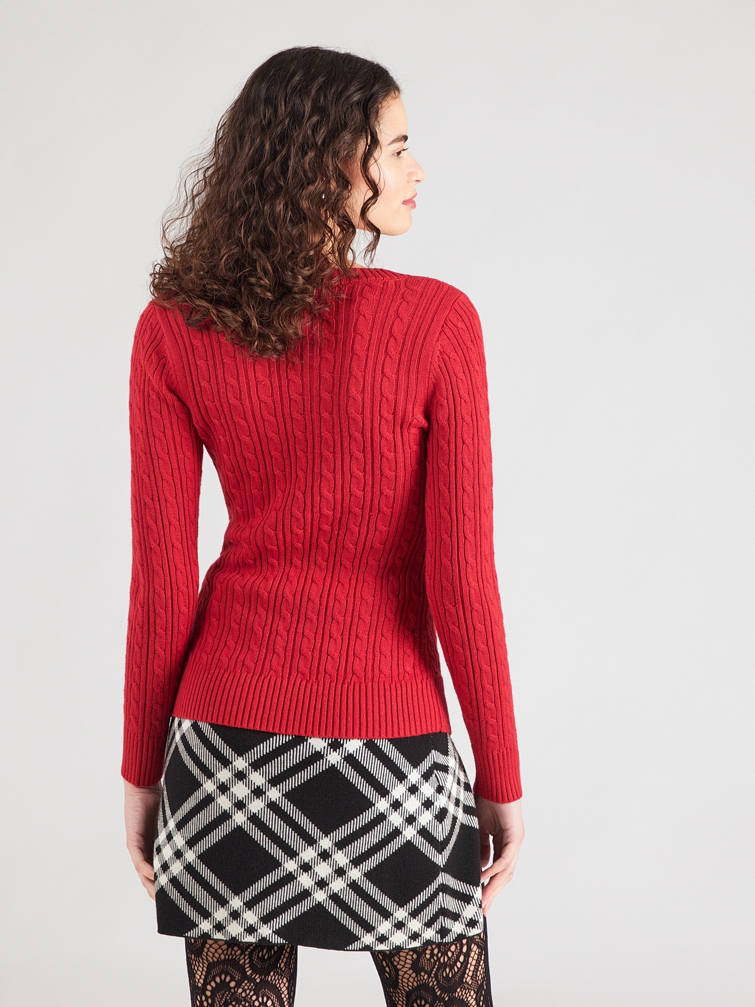 Design: Manșete cu striații, Decolteu adânc, Tricot torsadă; Material: Tricot; Decolteu: Decolteu în V; Imprimeu: Monocrom; Detalii: Broderie; Detalii: Fully fashioned, Material moale; Croi: Croi mulat; Lungime mâneci: Mâncecă lungă; Lungime: Lungime normală