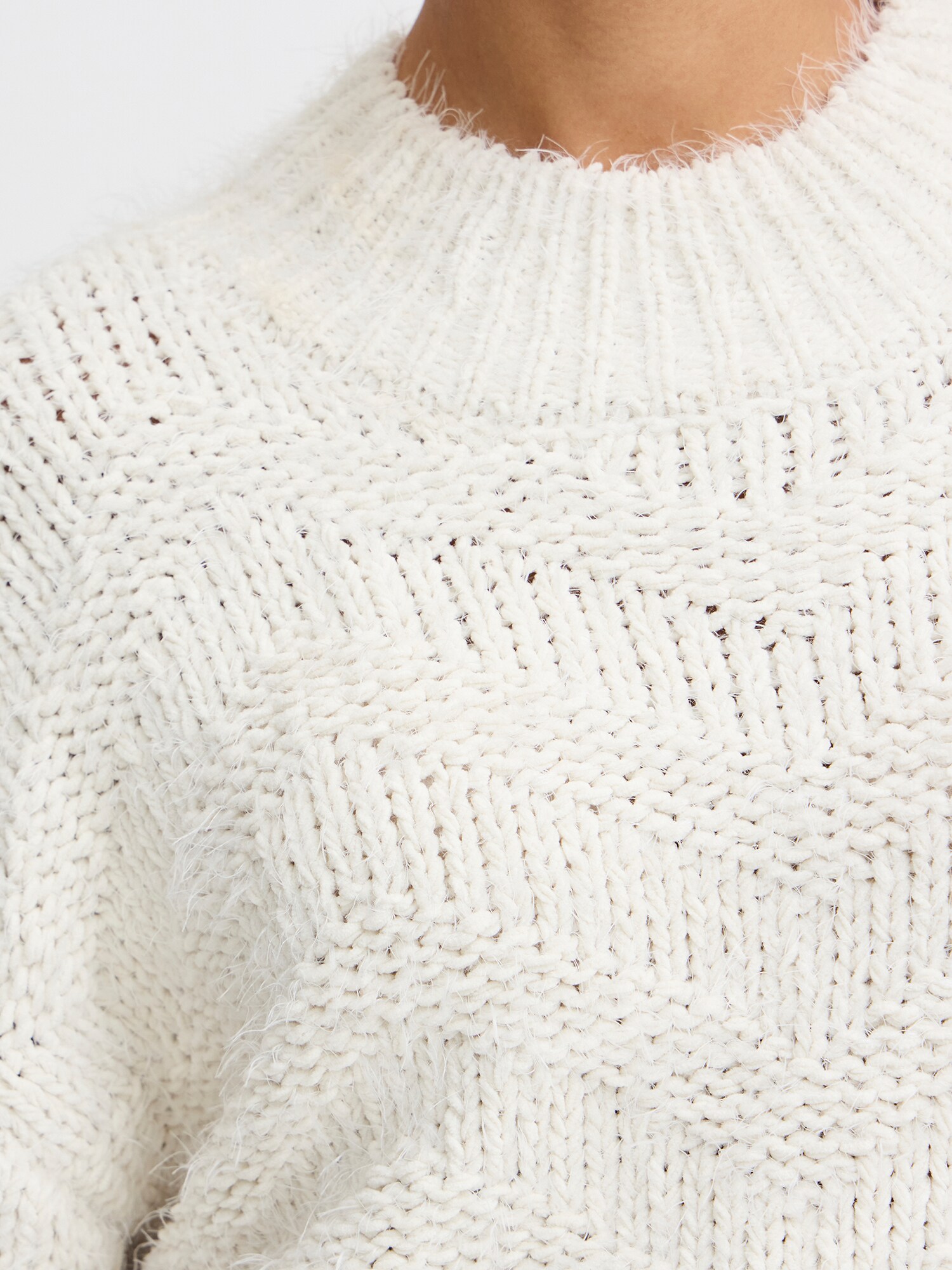 Design: Guler din tricot cu striații, Manșete cu striații, Umăr întretăiat; Material: Tricot; Decolteu: Decolteu rotund; Imprimeu: Monocrom; Detalii: Material structurat; Croi: Croi lejer; Lungime mâneci: Mâncecă lungă; Lungime: Lungime normală