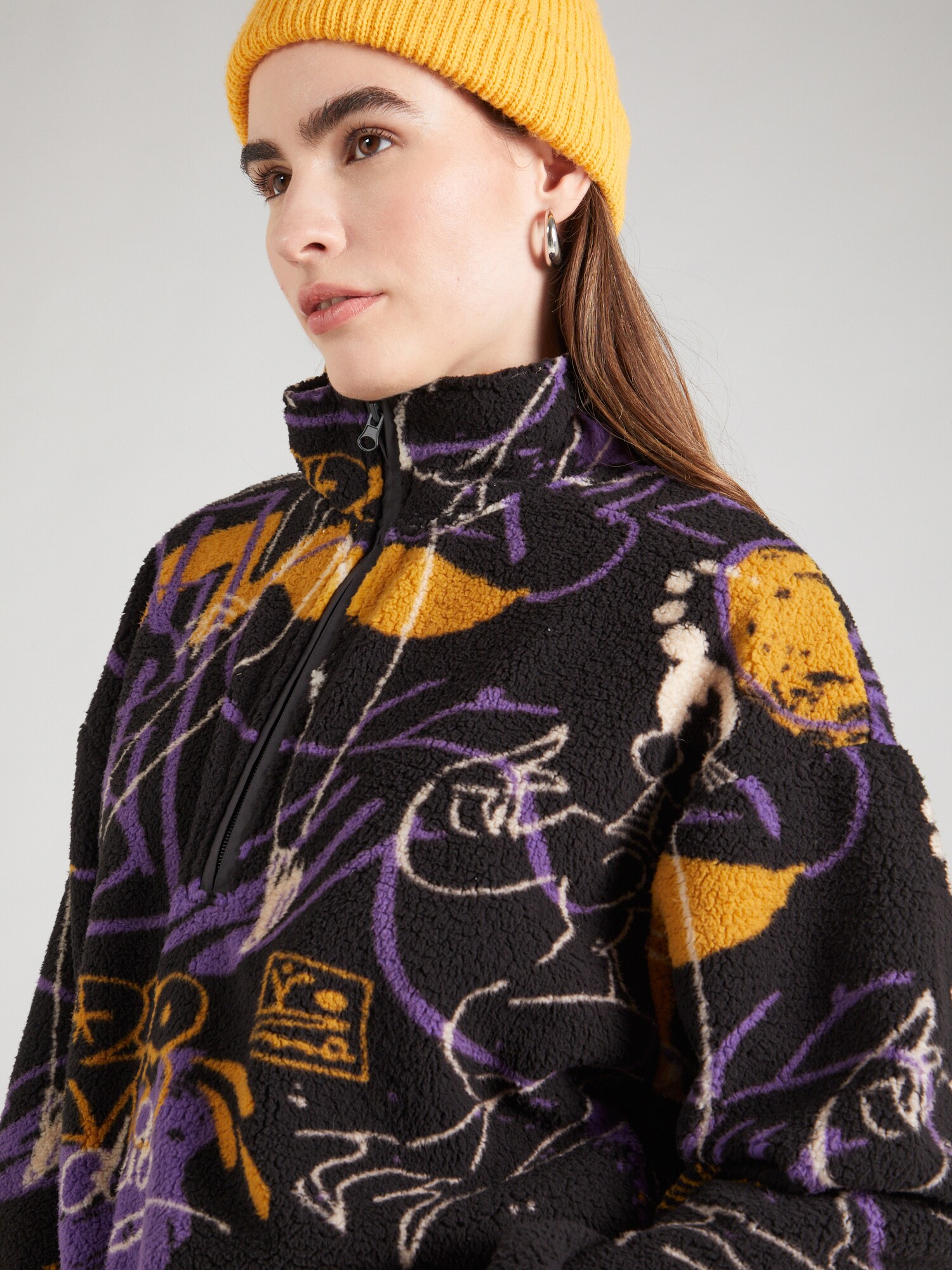 Design: Tiv/ betelie elastică, Umăr întretăiat, Semifermoar; Tip de închidere: Fermoar; Material: Material reciclat; Decolteu: Pulover troyer; Detalii: Drapat; Detalii: Imprimat în totalitate, Material moale; Croi: Croi lejer; Lungime mâneci: Mâncecă lungă; Lungime: Lungime normală
