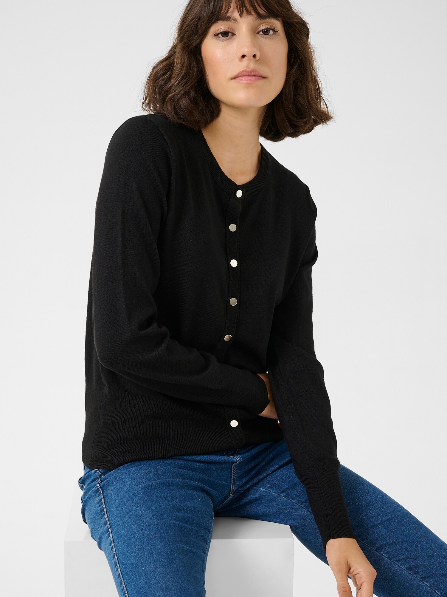 Design: Guler din tricot cu striații, Șir de nasturi, Manșete cu striații; Tip de închidere: Închidere cu nasturi; Material: Tricot; Decolteu: Decolteu rotund; Imprimeu: Monocrom; Detalii: Fully fashioned, Material răcoros; Croi: Croi normal; Lungime mâneci: Mâncecă lungă; Lungime: Lungime normală
