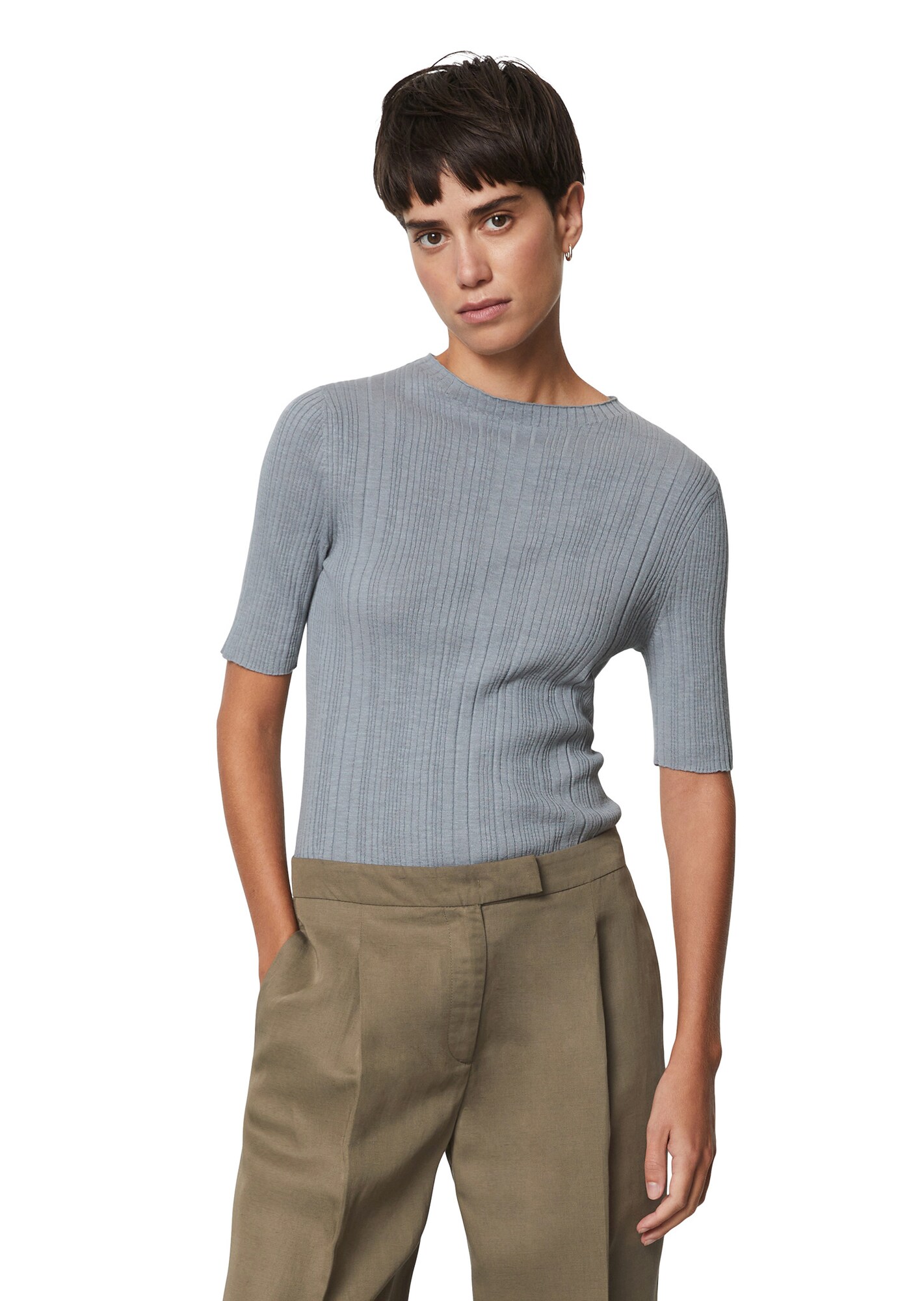 Design: Guler din tricot cu striații; Material: Tricot; Decolteu: Decolteu rotund; Imprimeu: Monocrom; Detalii: Material structurat; Croi: Croi mulat; Lungime mâneci: Mâneci scurte; Lungime: Lungime normală