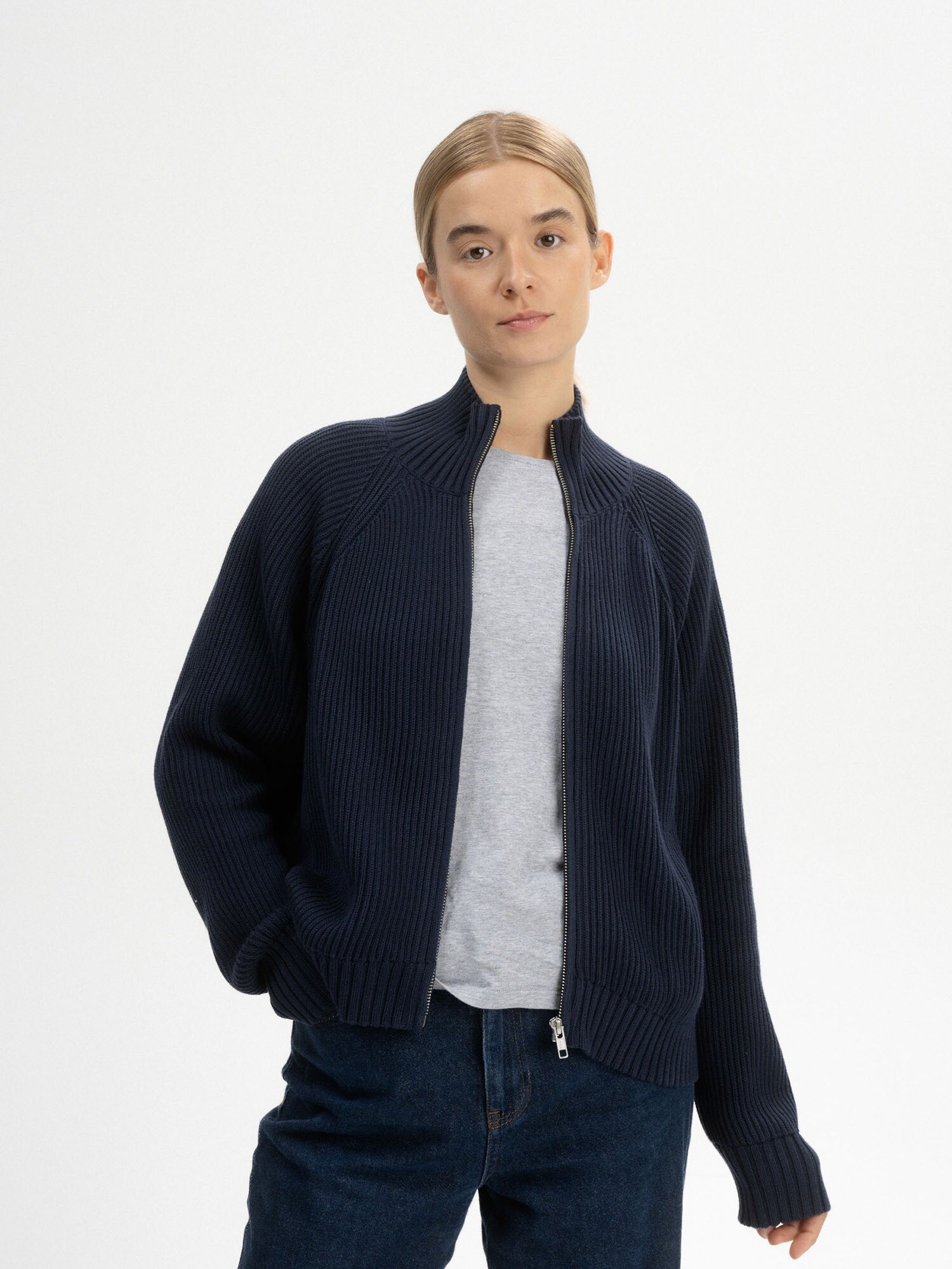 Design: Guler din tricot cu striații, Tricot rib; Tip de închidere: Fermoar; Material: Tricot; Decolteu: Guler tunică; Imprimeu: Monocrom; Detalii: Material moale, Fair Trade (USA); Croi: Croi normal; Lungime mâneci: Mâncecă lungă; Lungime: Lungime normală