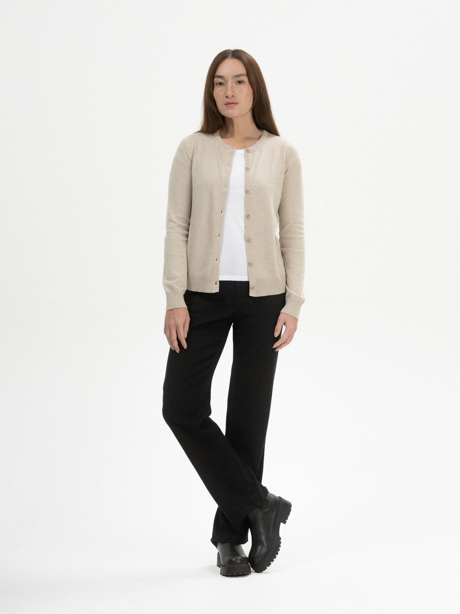 Design: Șir de nasturi, Manșete cu striații; Tip de închidere: Închidere cu nasturi; Material: Tricot; Decolteu: Decolteu rotund; Imprimeu: Melanj; Detalii: Material moale, Fair Trade (USA); Croi: Croi mulat; Lungime mâneci: Mâncecă lungă; Lungime: Lungime normală