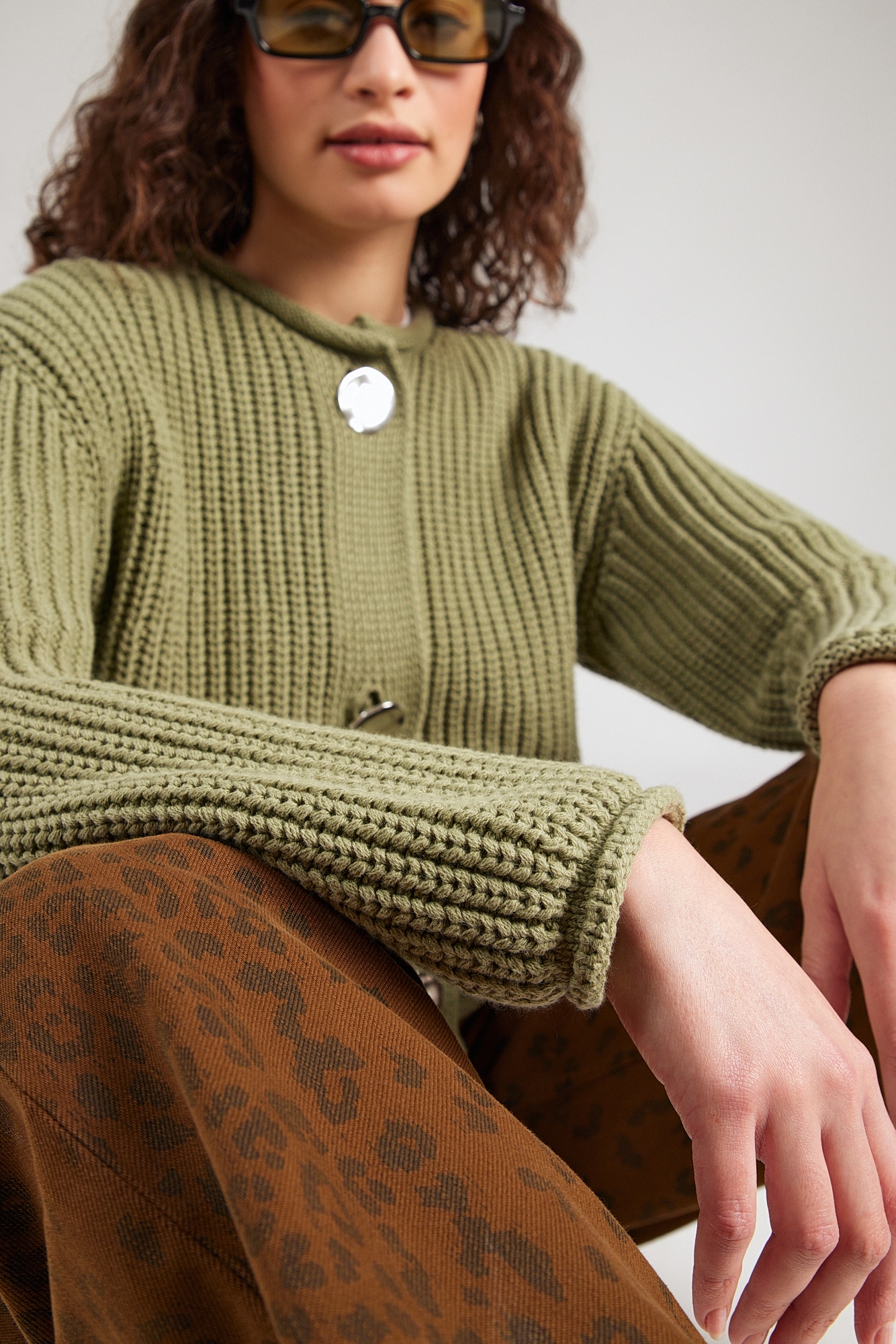 Design: Tiv rulat, Umăr întretăiat, Buzunare aplicate; Tip de închidere: Închidere cu nasturi; Material: Tricot; Decolteu: Decolteu rotund; Imprimeu: Monocrom; Detalii: Cusături ton în ton, Material moale; Croi: Croi normal; Lungime mâneci: Mâncecă lungă; Lungime: Croi scurt