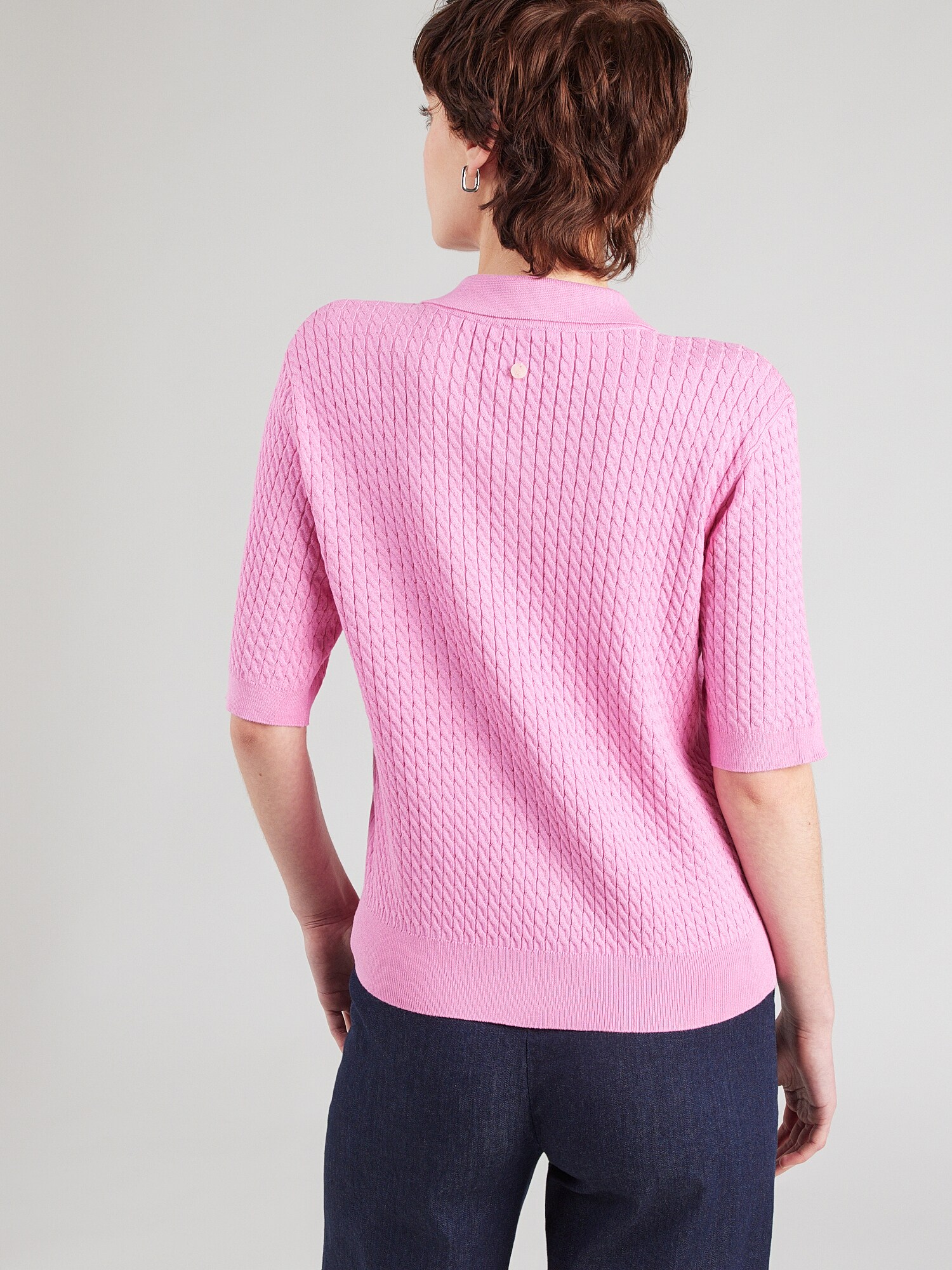 Design: Guler din tricot cu striații, Tiv drept, Șir de nasturi; Tip de închidere: Închidere cu nasturi; Material: Tricot; Decolteu: Guler polo; Imprimeu: Monocrom; Detalii: Fully fashioned, Material structurat; Croi: Croi normal; Lungime mâneci: Mâneci medii; Lungime: Lungime normală