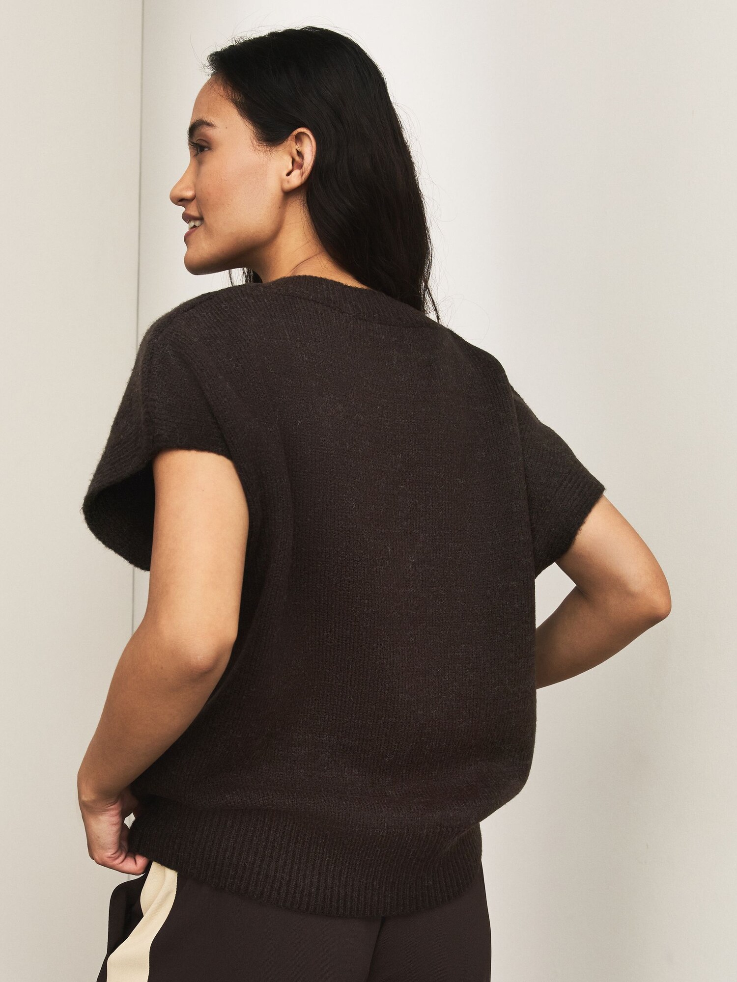 Design: Manșete cu striații; Material: Tricot; Decolteu: Decolteu în V; Imprimeu: Monocrom; Detalii: Fully fashioned; Croi: Croi lejer; Lungime mâneci: Mâneci scurte; Lungime: Lungime normală