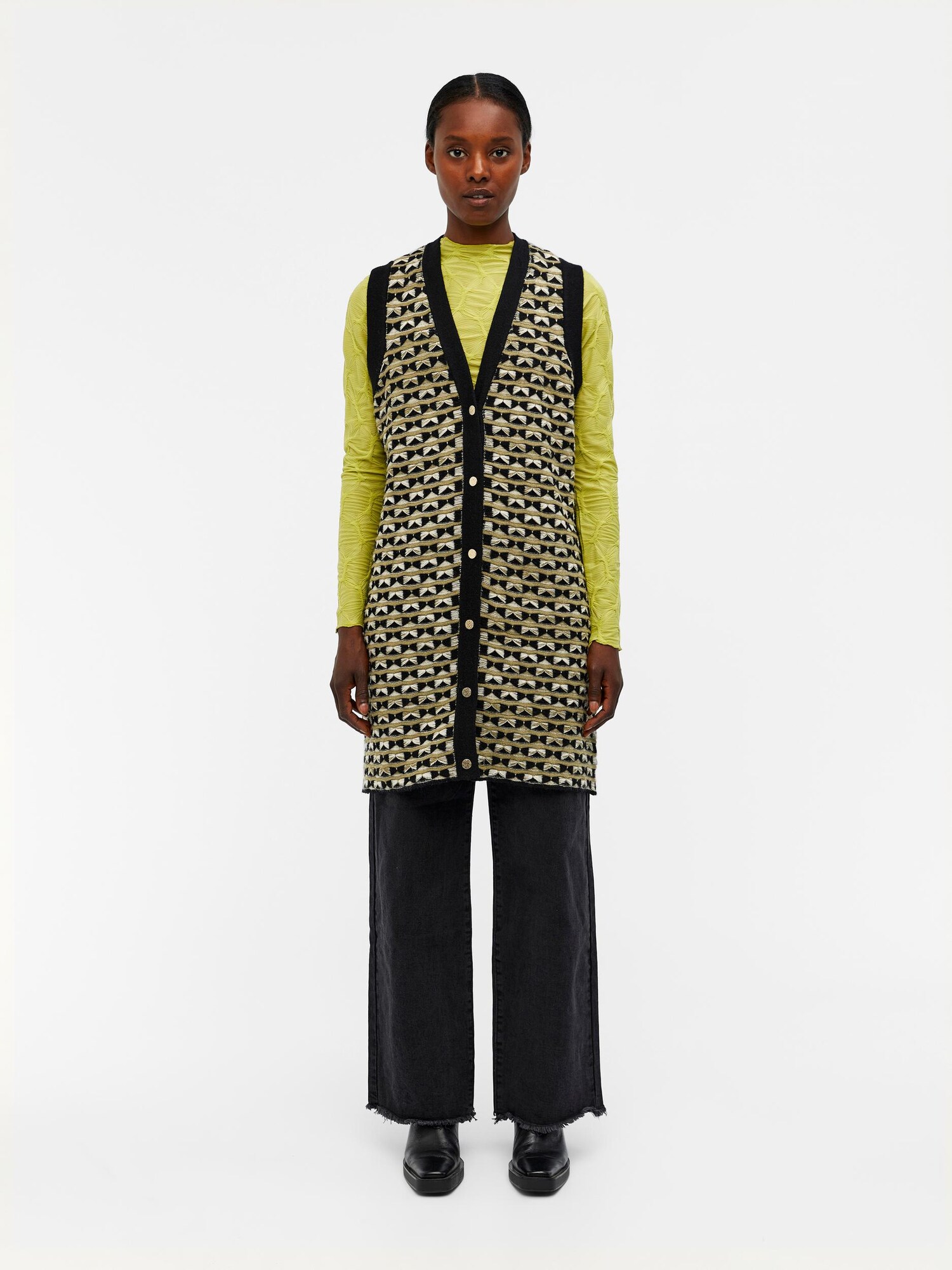 OBJECT Geacă tricotată ELLIE oliv / negru / alb