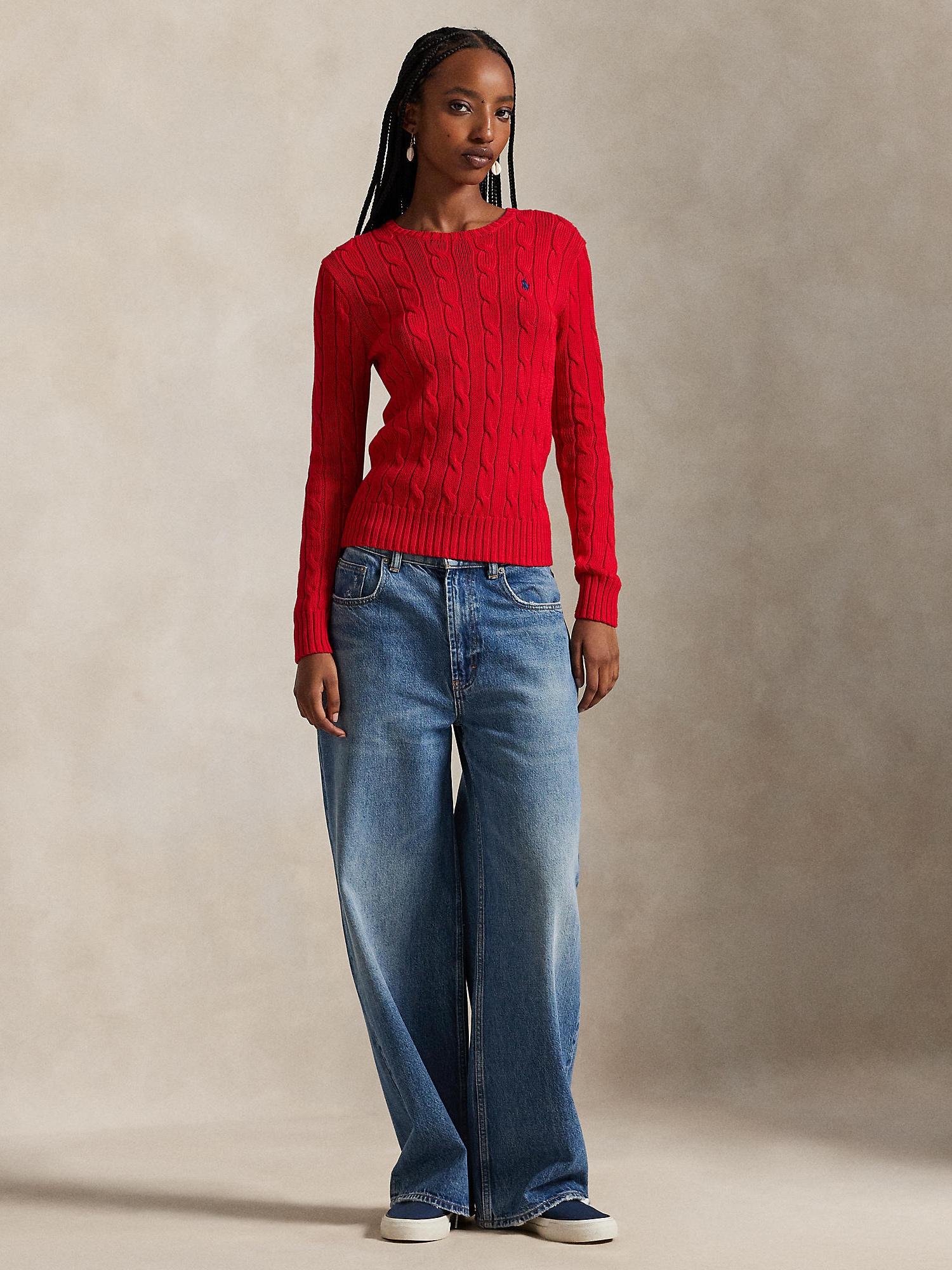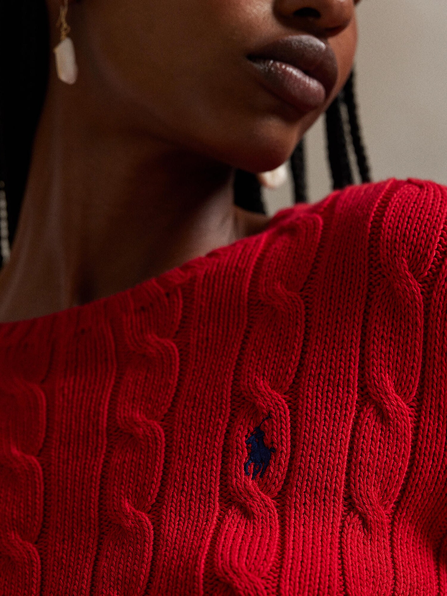 Design: Guler din tricot cu striații, Manșete cu striații, Tricot torsadă; Material: Tricot; Decolteu: Decolteu rotund; Imprimeu: Monocrom; Detalii: Broderie; Detalii: Fully fashioned, Logo brodat, Bumbac pima, Material structurat; Croi: Croi mulat; Lungime mâneci: Mâncecă lungă; Lungime: Lungime normală