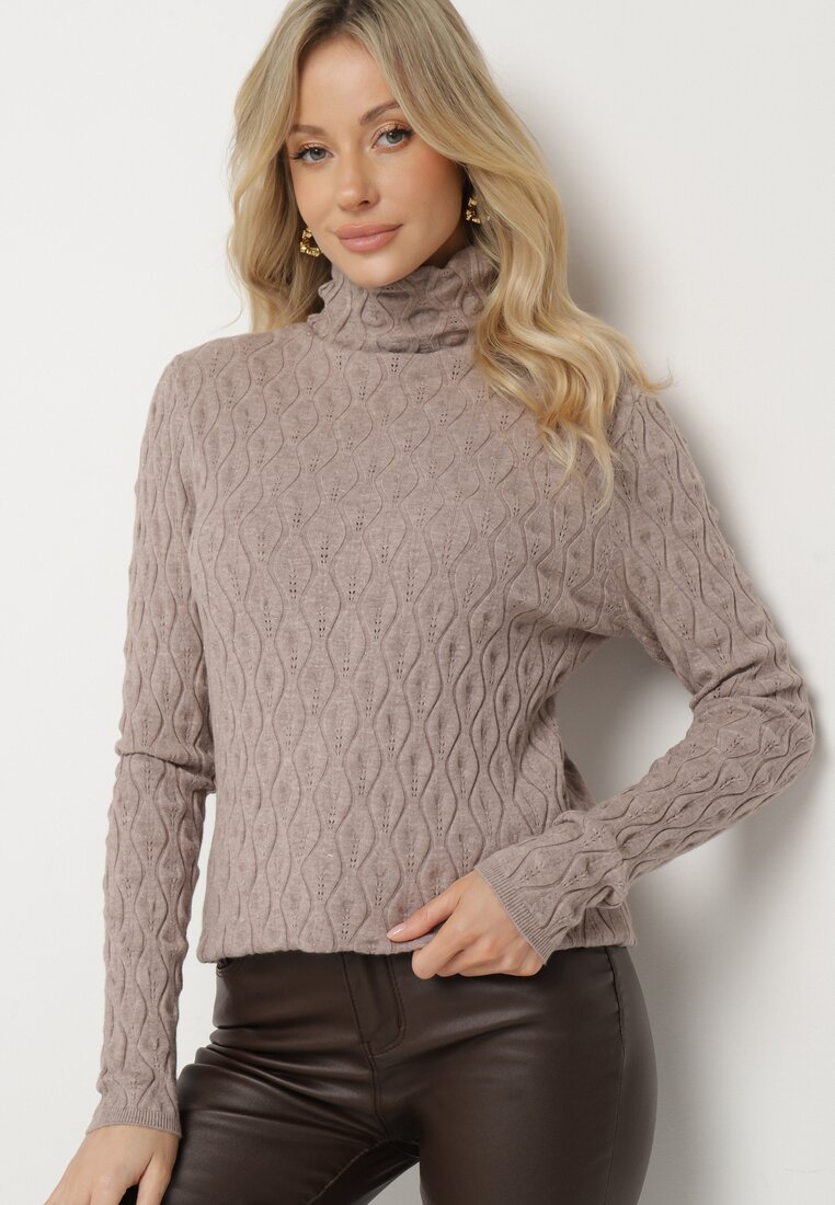 Pulover pe gât Bej închis