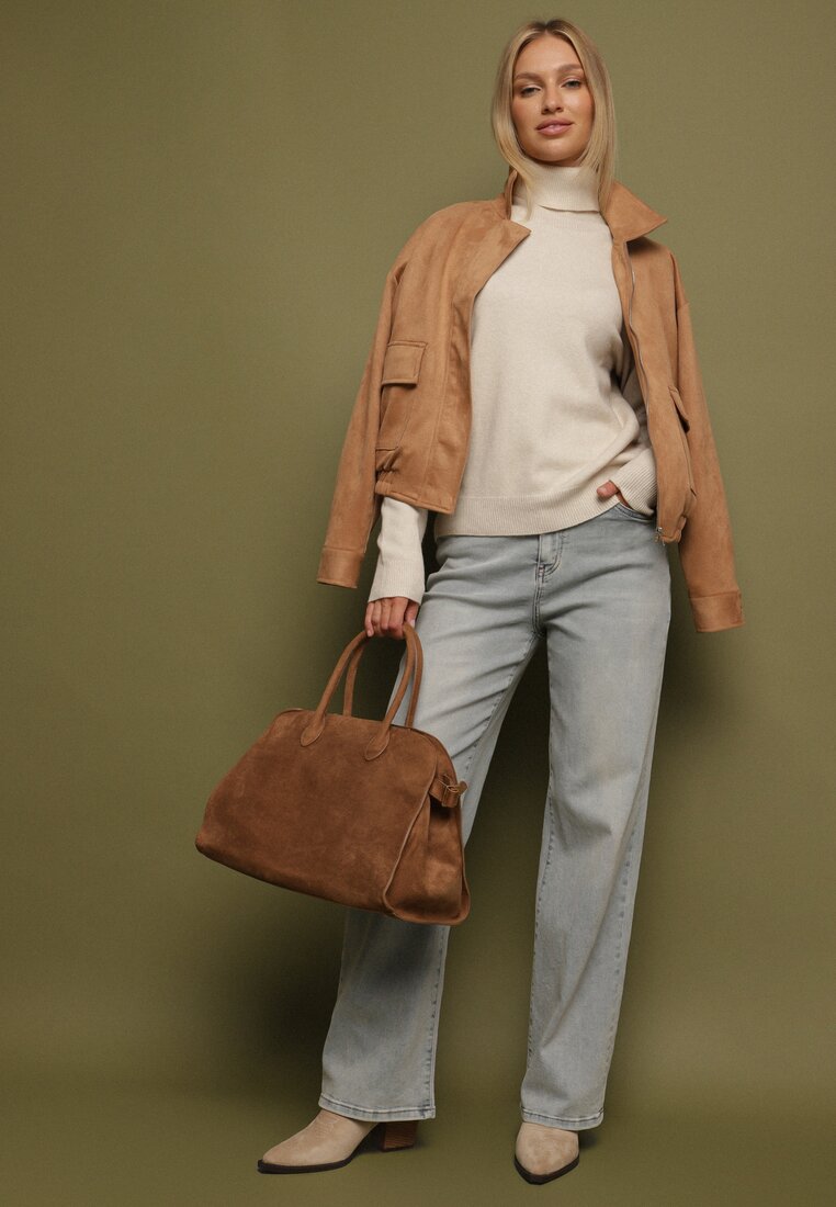 Pulover pe gât Bej