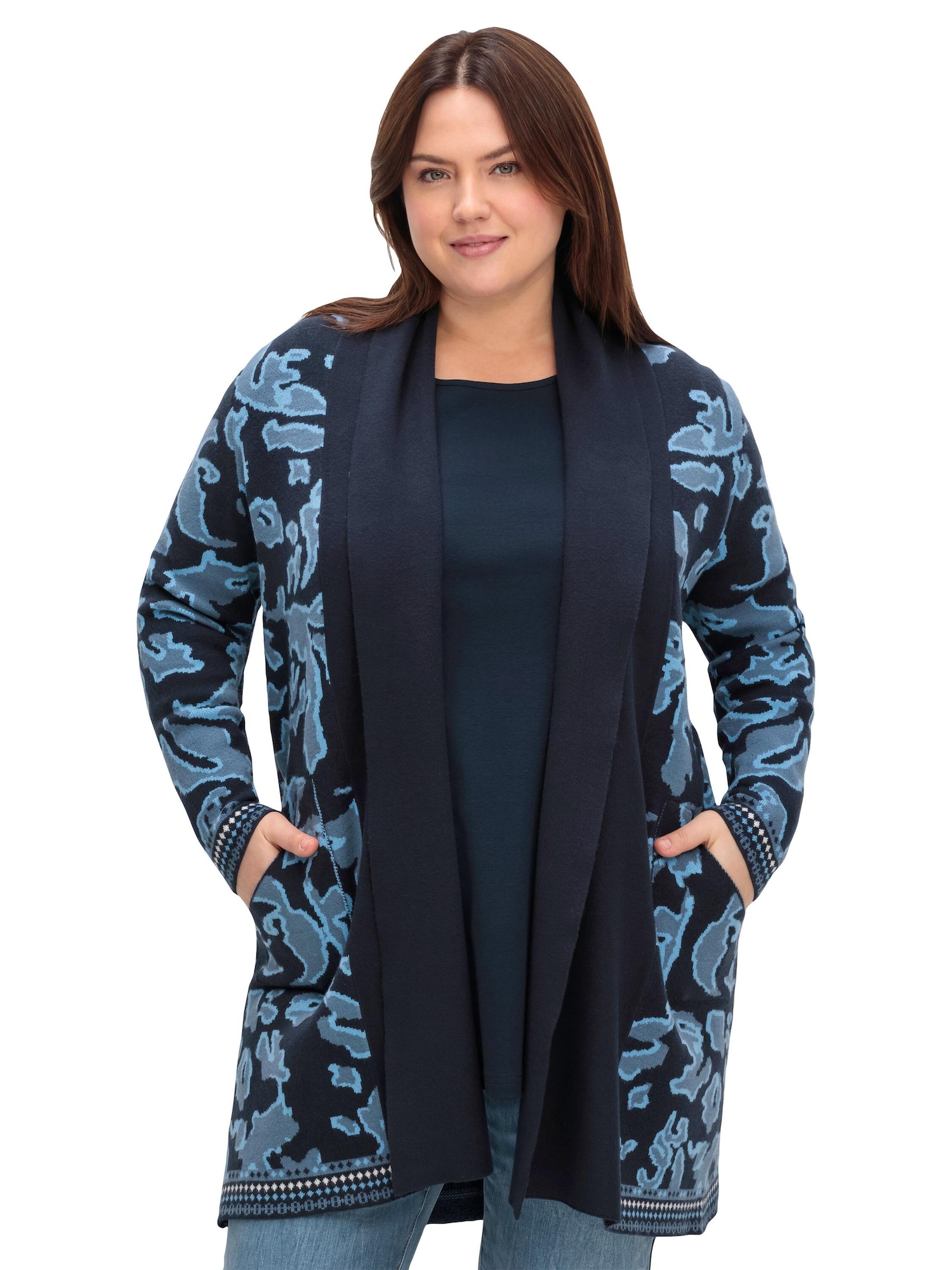 SHEEGO Geacă tricotată bleumarin / albastru deschis / alb