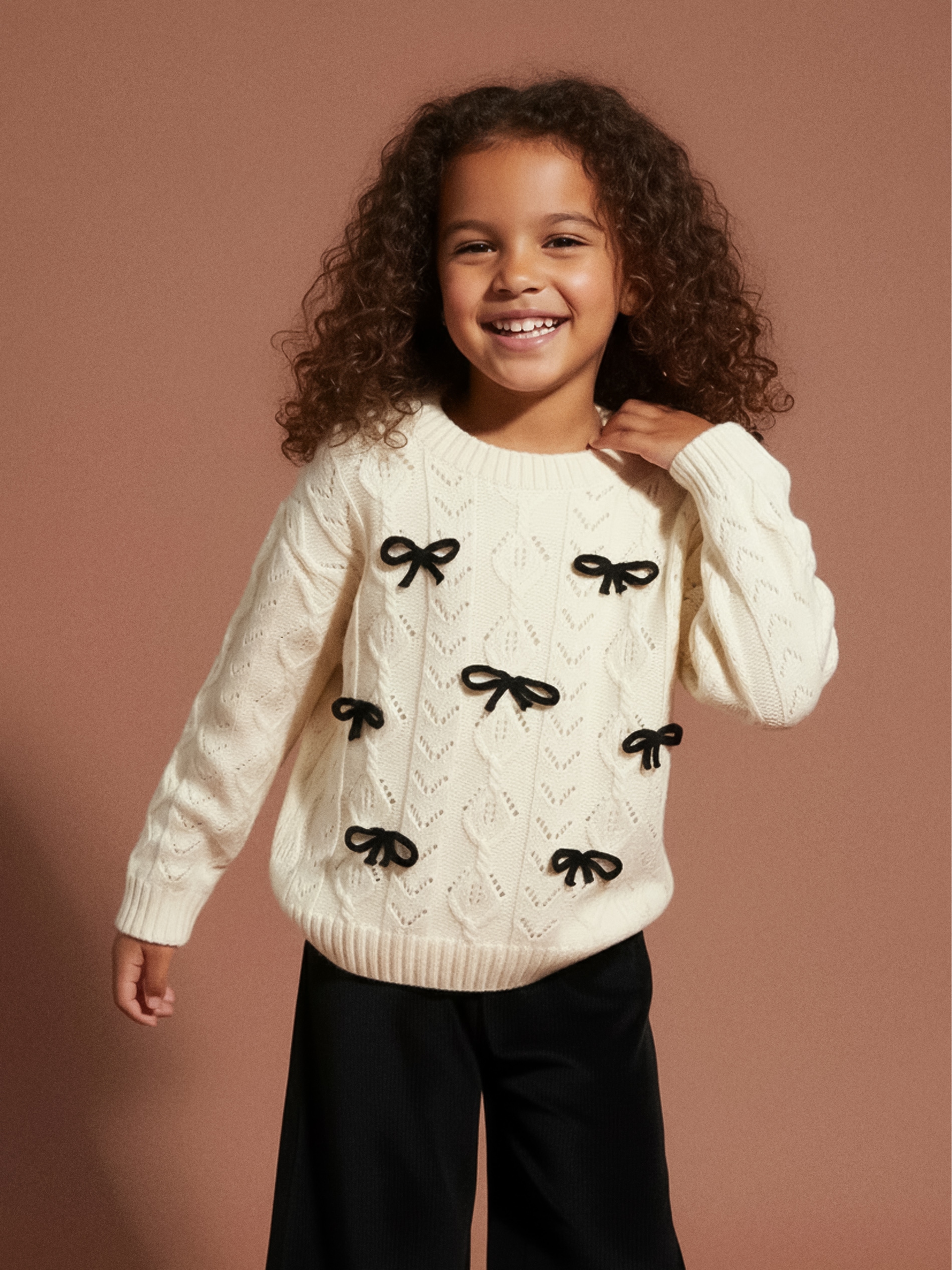 Sinsay - Pulover ajurat cu funde decorative - crem -