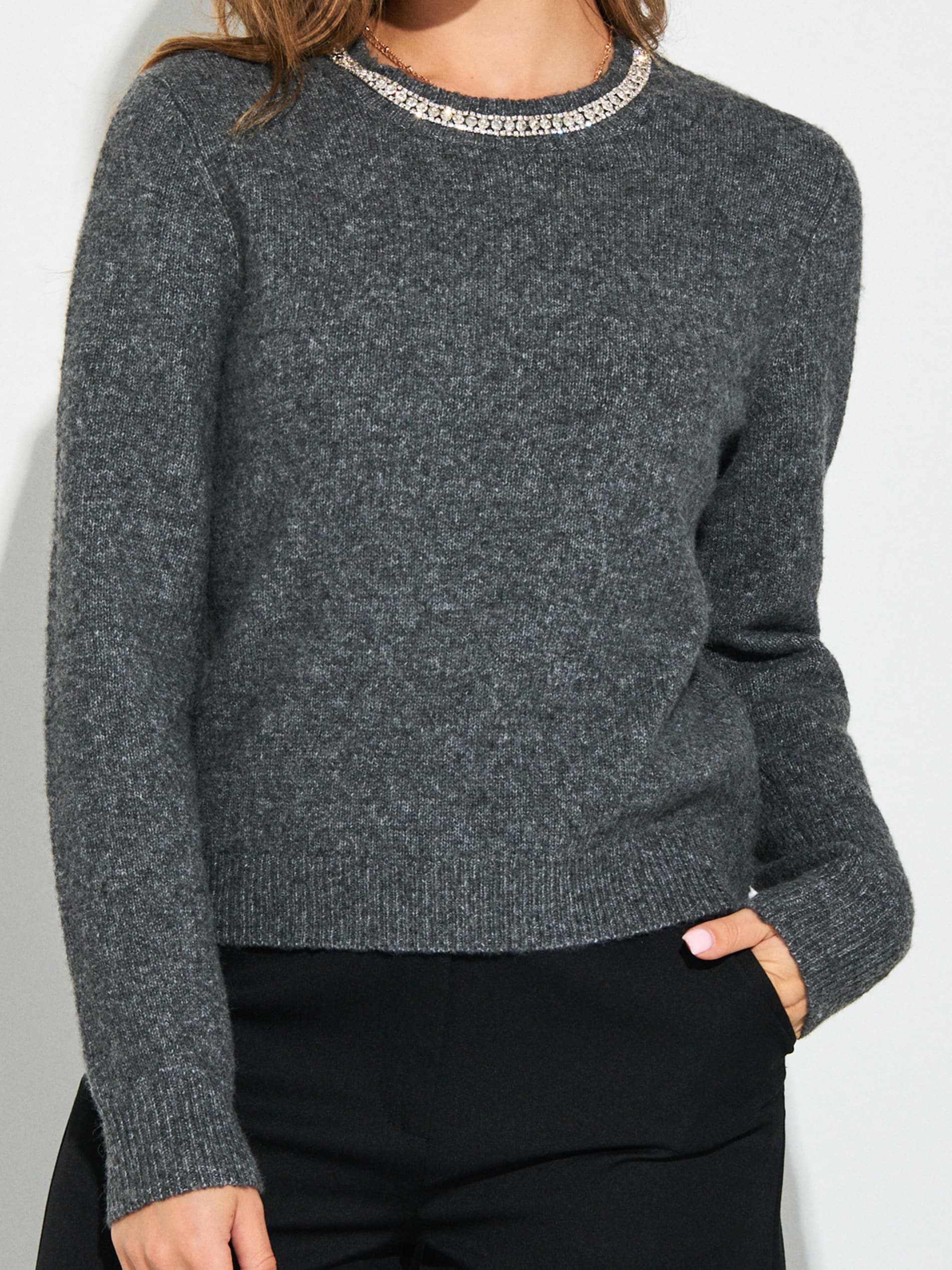 Sinsay - Pulover cu pietre decorative cu amestec de lână - gri-închis -