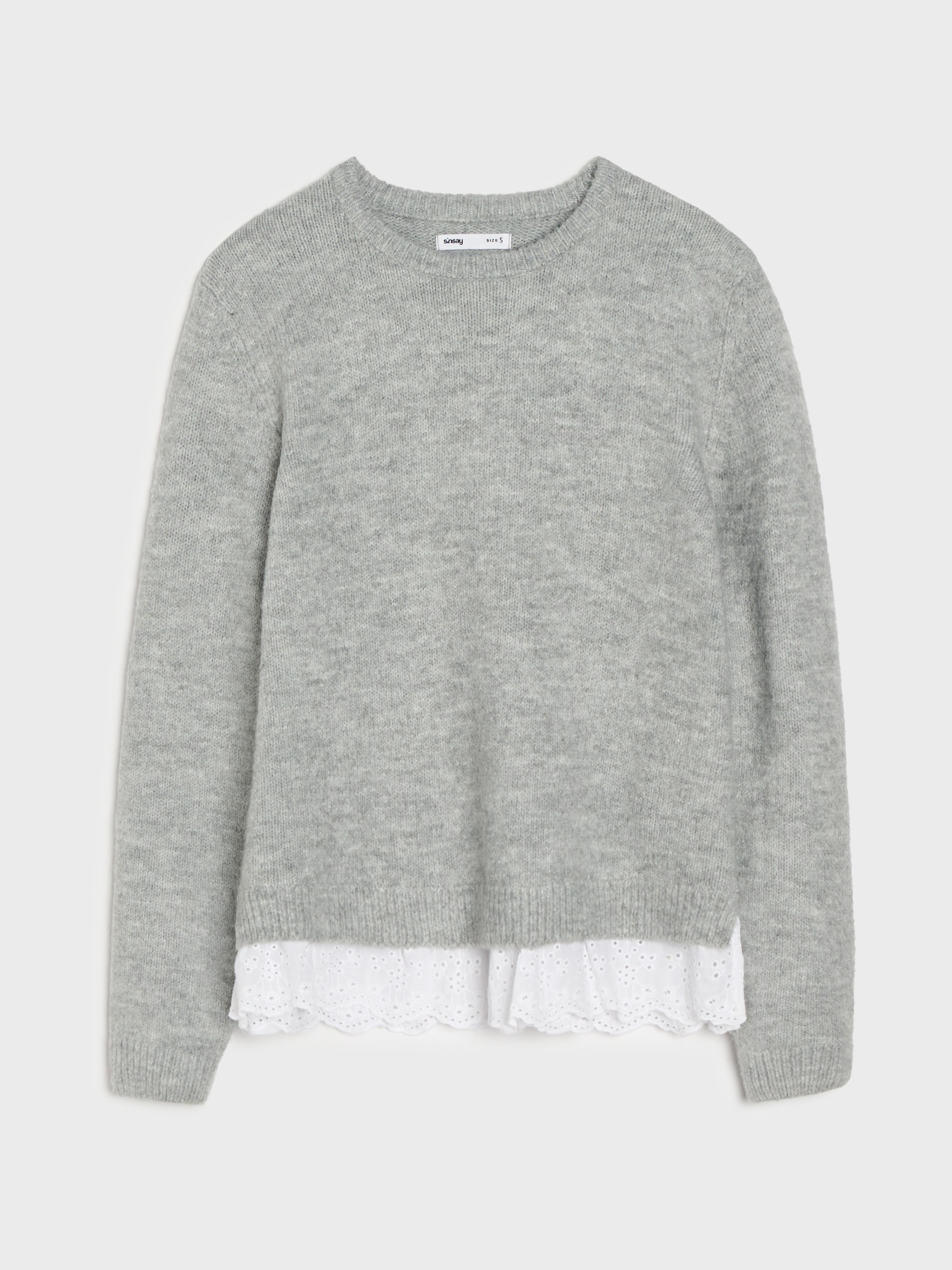Sinsay - Pulover cu tiv brodat de cămașă - gri deschis