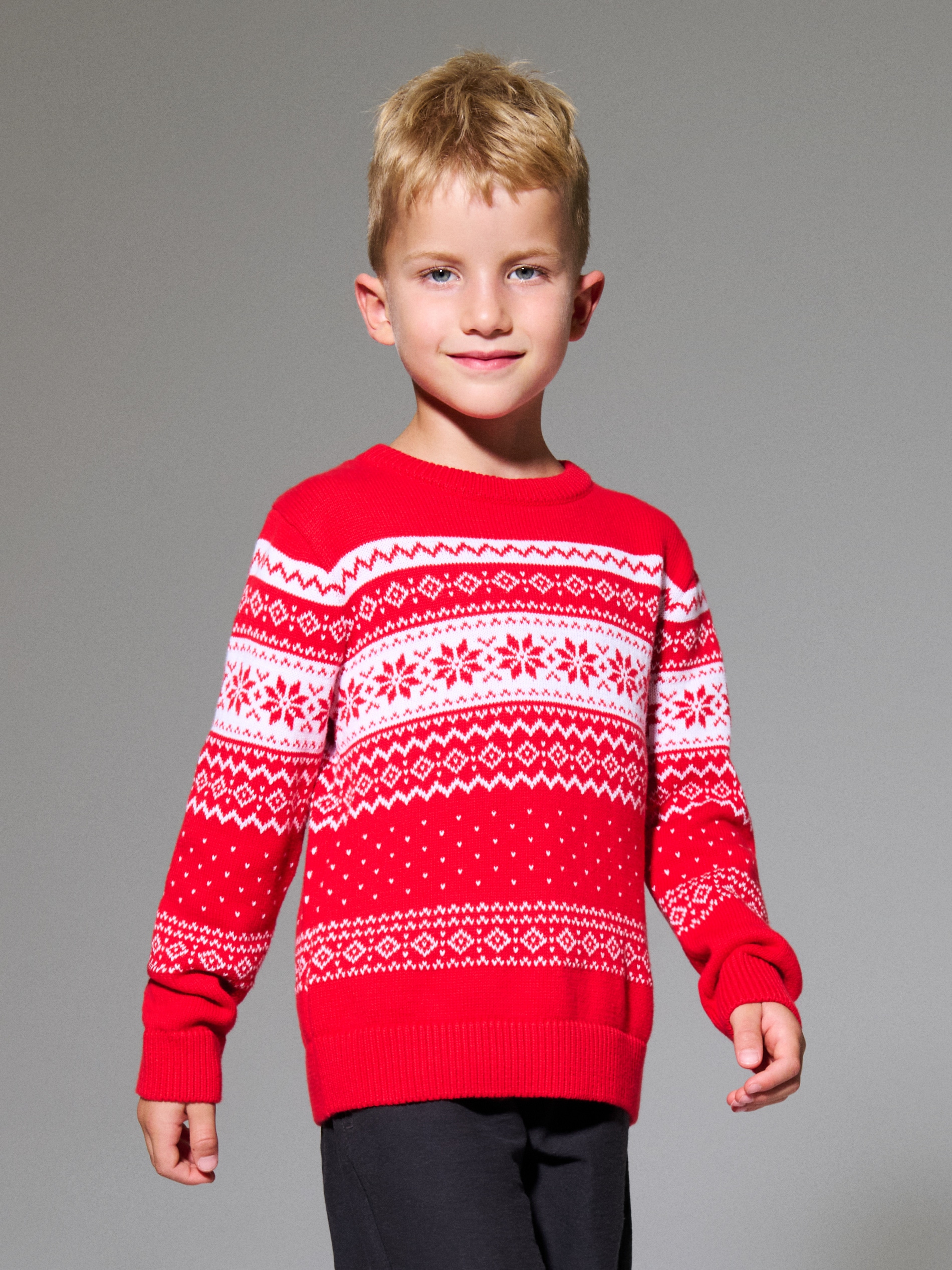 Sinsay - Pulover festiv cu model scandinav și fulgi de zăpadă - roșu -