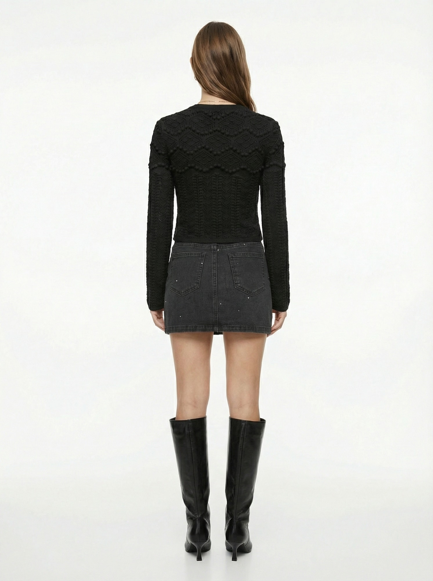 Design: Guler din tricot cu striații, Manșete cu striații, Tiv valurat; Material: Tricot; Decolteu: Decolteu rotund; Imprimeu: Monocrom; Detalii: Model cu găuri; Detalii: Tricot cu ochiuri mari, Tricot cu model, Material moale; Croi: Croi mulat; Lungime mâneci: Mâncecă lungă; Lungime: Lungime normală