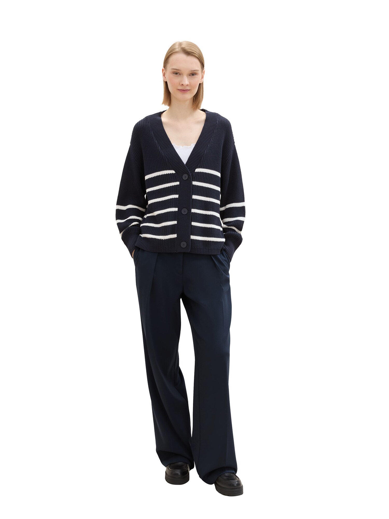 TOM TAILOR DENIM Geacă tricotată bleumarin / alb