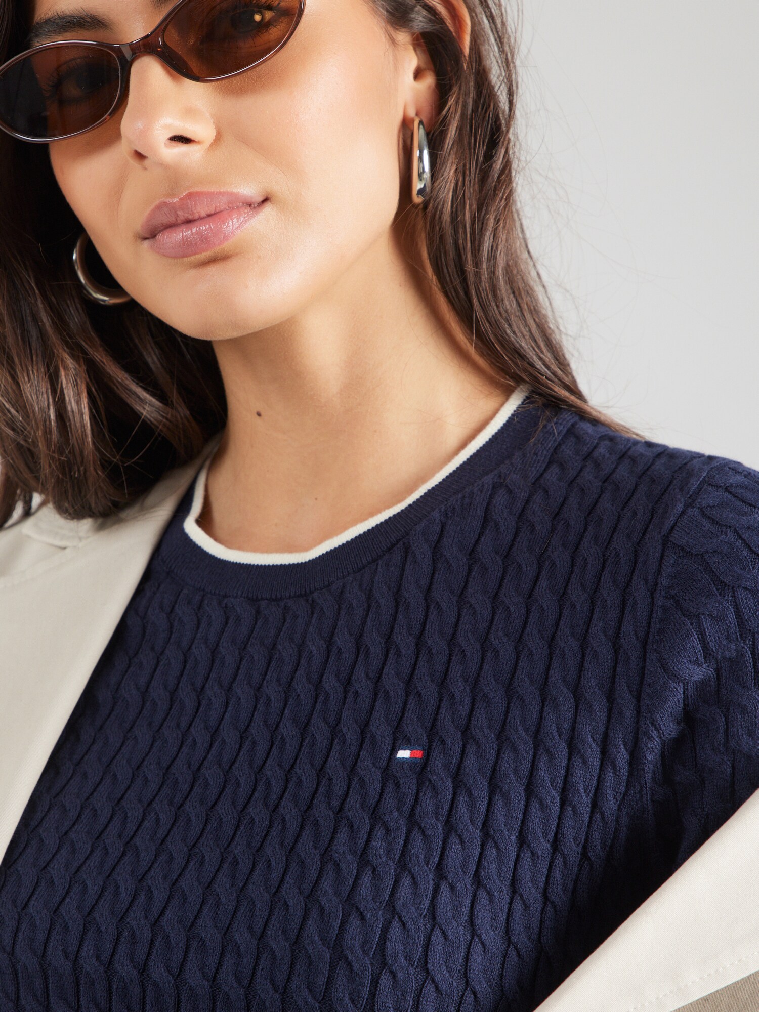 Design: Guler din tricot cu striații, Tiv drept, Manșete cu striații, Tricot torsadă, Detalii în culori contrastante; Material: Tricot; Decolteu: Decolteu rotund; Imprimeu: Monocrom; Detalii: Broderie; Detalii: Fully fashioned, Logo brodat, Material structurat, Material moale; Croi: Croi normal; Lungime mâneci: Mâneci scurte; Lungime: Lungime normală
