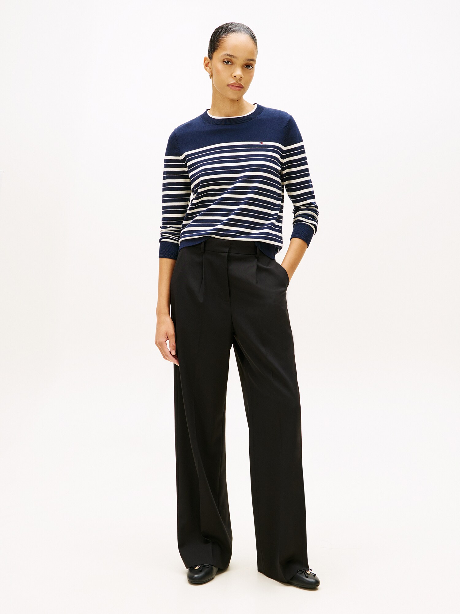 Design: Guler din tricot cu striații, Tiv drept, Manșete cu striații, Necktape; Material: Tricot; Decolteu: Decolteu rotund; Imprimeu: Cu dungi; Detalii: Broderie; Detalii: Imprimat în totalitate, Material moale; Croi: Croi normal; Lungime mâneci: Mâncecă lungă; Lungime: Lungime normală
