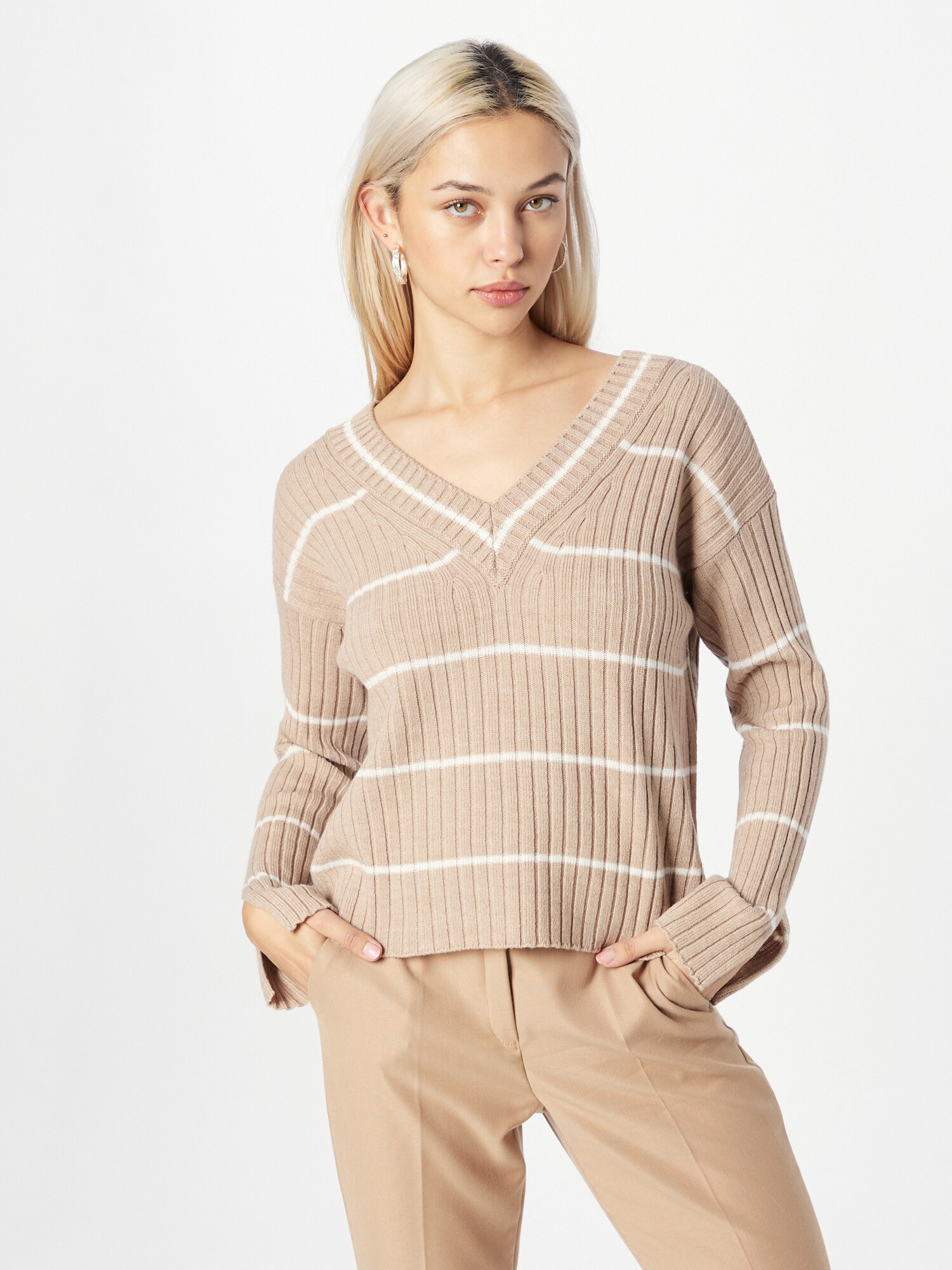 Îmbracă-te în eleganță și confort cu puloverul bej/nisipiu de la UNITED COLORS OF BENETTON, un must-have în garderoba ta! Acest pulover nu este doar un simplu articol vestimentar; este o declarație de stil, cu gulerul său din tricot cu striații și un decolteu în V care îți evidențiază frumusețea naturală. Dungile subtile adaugă un aer jucăuș, în timp ce detaliile sclipitoare și materialul structurat îți vor oferi un look rafinat, perfect atât pentru birou, cât și pentru întâlniri casual. Croiul lejer și mânecile lungi asigură confortul maxim, fără a compromite stilul. Transformă-ți outfiturile de zi cu zi și simte-te fabulos în fiecare moment. Alege puloverul care îți completează personalitatea și fă-l al tău astăzi!