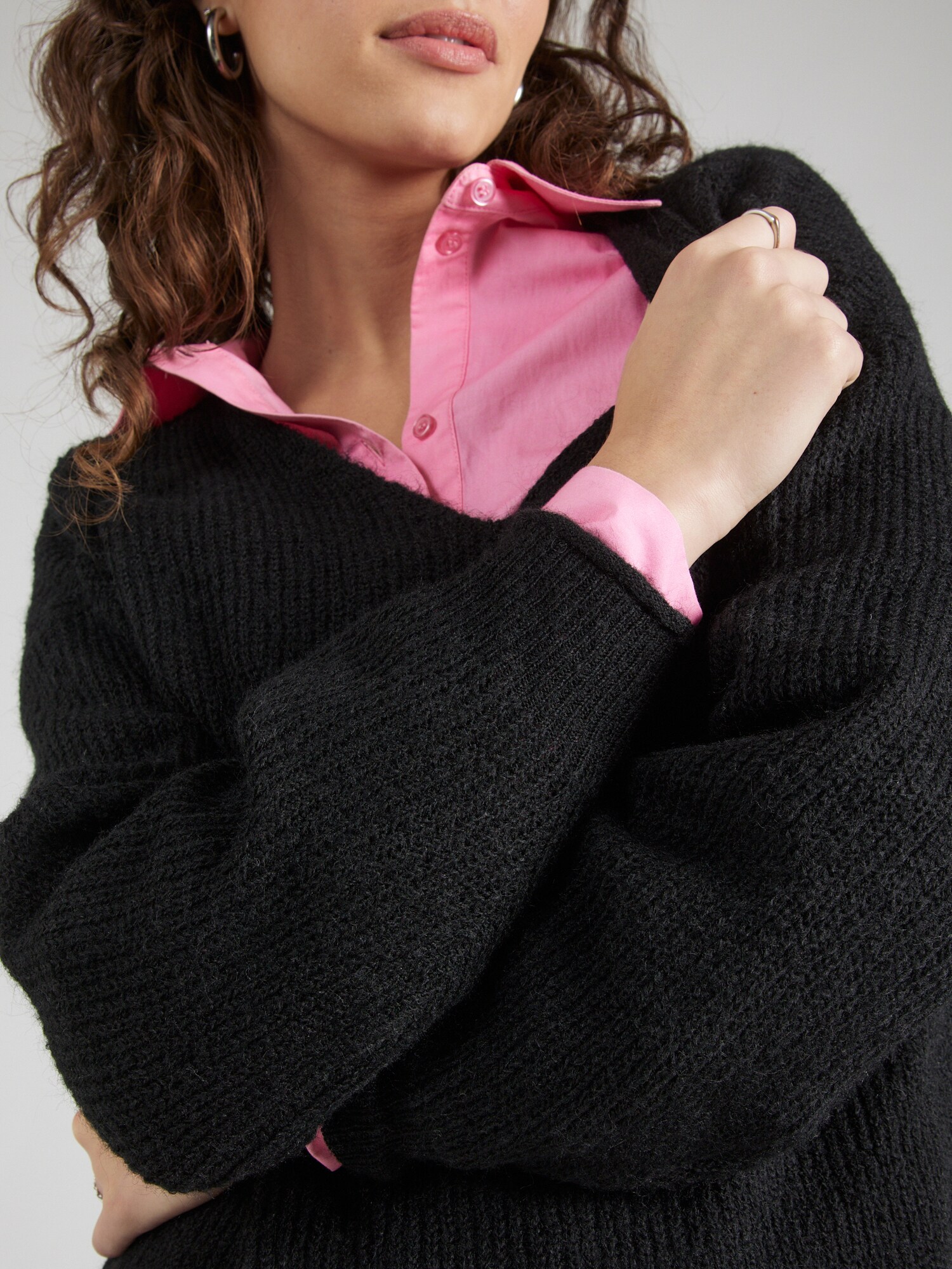 Design: Guler din tricot cu striații, Manșete cu striații, Tiv rulat, Umăr întretăiat; Material: Material reciclat; Decolteu: Decolteu în V; Imprimeu: Monocrom; Detalii: Material structurat, Material moale; Croi: Croi lejer; Lungime mâneci: Mâncecă lungă; Lungime: Lungime normală