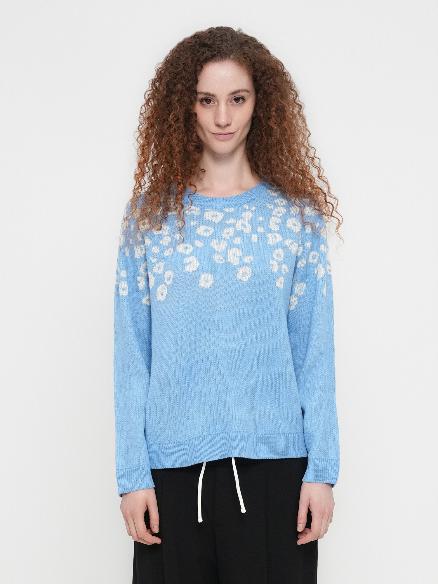 Design: Guler din tricot cu striații, Manșete cu striații; Material: Tricot; Decolteu: Decolteu rotund; Imprimeu: Cu imprimeu floral; Detalii: Fully fashioned, Material moale; Croi: Croi normal; Lungime mâneci: Mâncecă lungă; Lungime: Lungime normală