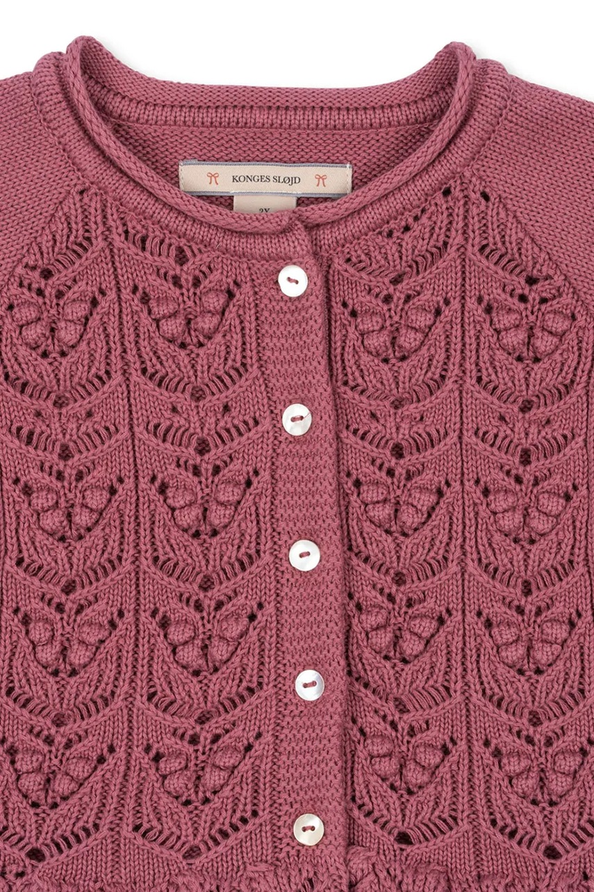 Cardigan copii din colecția Konges Sløjd. Model cu decolteu rotund confecționat din tricot neted.