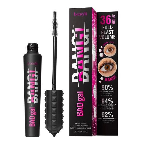 Mascara, Benefit, Bad Gal Bang, 8.5 g, Negru Mascara cu beneficii pentru volum, explozie completa de 36 de ore, creeaza un volum masiv fara a ingreuna genele. Formula care sfideaza gravitatia contine particule aero, unul dintre cele mai usoare materiale cunoscute derivate din tehnologia spatiala. Acest rimel inovator de culoare neagra se stratifica cu usurinta pentru un impact mai mare si mai rau. Peria este rationalizata pentru a acoperi cu usurinta fiecare gena uniform, facandu-l cel mai bun rimel pentru volum mai jos. Gramaj: 8.5 g