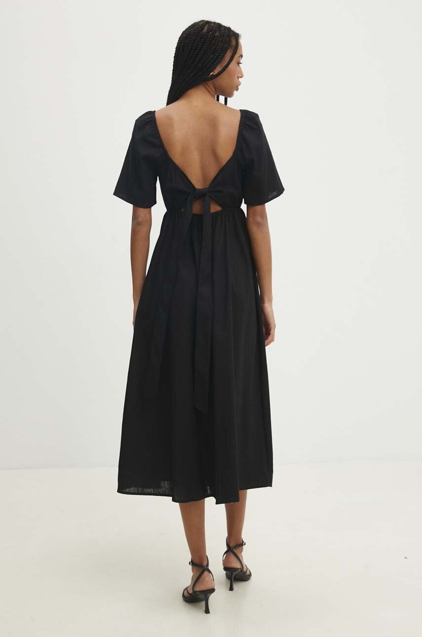 Answear Lab rochie din in culoarea negru, midi, evazată