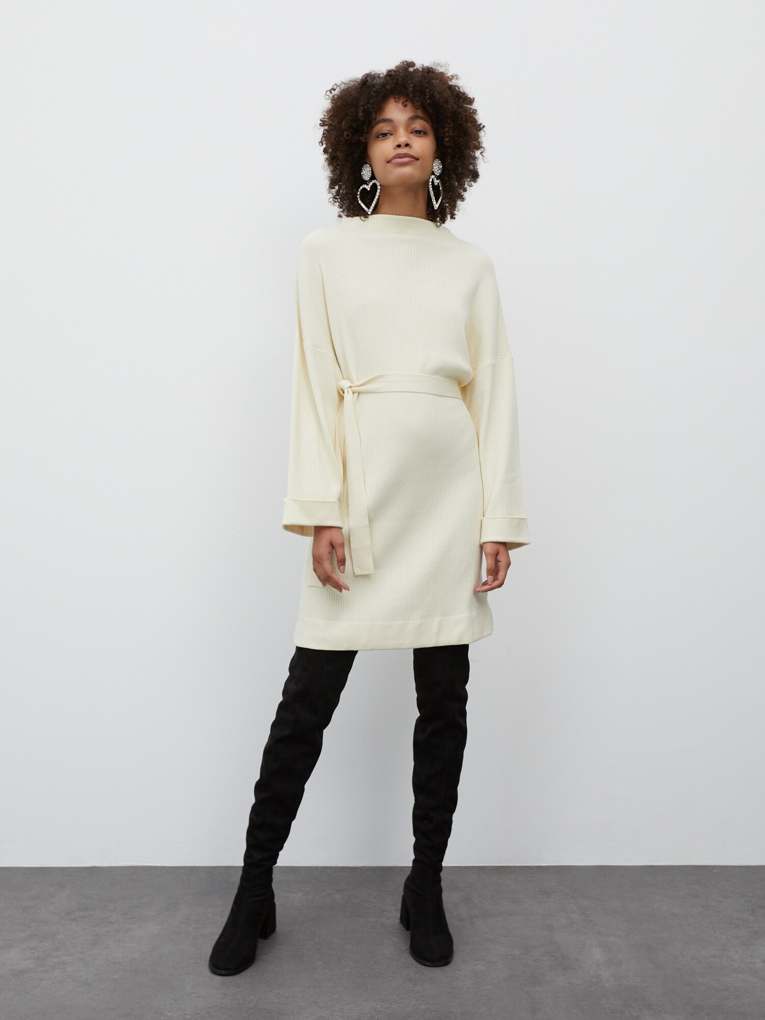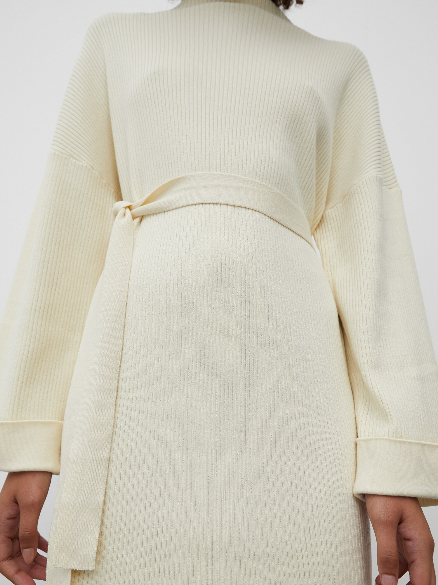 Design: Tricot rib, Cu nod/ benzi; Material: Viscoză; Decolteu: Guler tunică; Imprimeu: Monocrom; Detalii: Material structurat, Material moale; Lungimea: Până la genunchi; Croi: Croi normal; Lungime mâneci: Mâncecă lungă