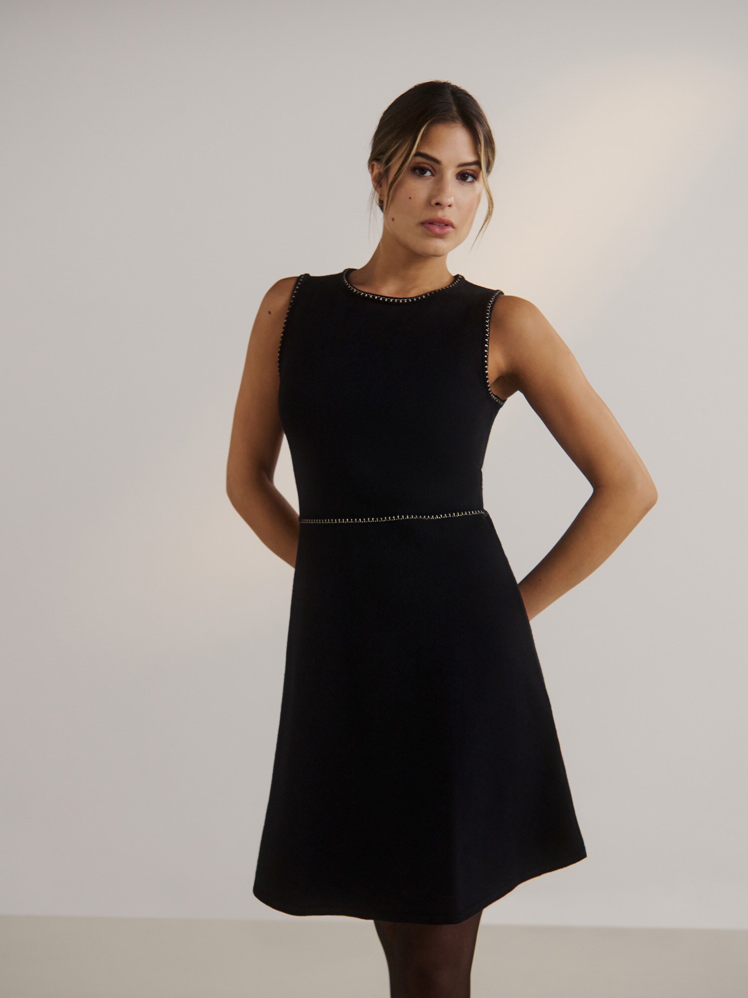Design: Tiv/ margine tighelită, Tiv drept, Necktape; Material: Viscoză; Decolteu: Decolteu rotund; Imprimeu: Monocrom; Tipul de susținere: Bretele late; Detalii: Cusături ton în ton, Material moale; Lungimea: Scurt/mini; Croi: Cambrat; Croi: Croi normal; Lungime mâneci: Fără mâneci
