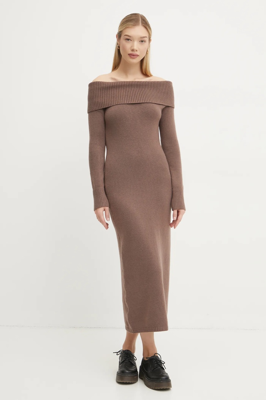 Hollister Co. rochie culoarea maro, midi, mulată, KI359-4343