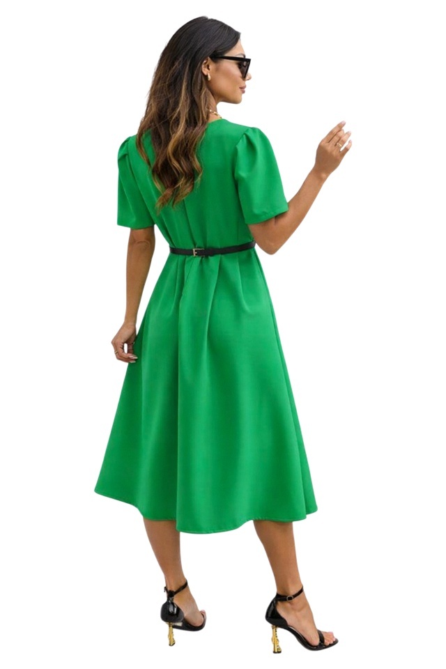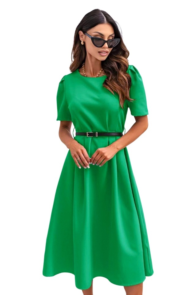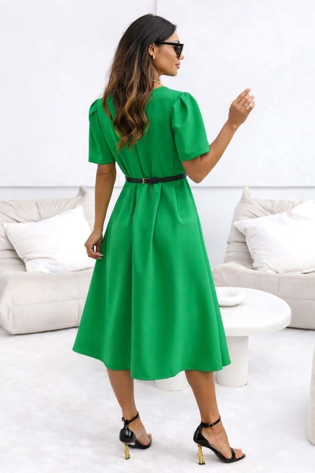 Rochie de zi ZALIA, cu maneca bufanta si curea subtire, Verde, Marimea S/M