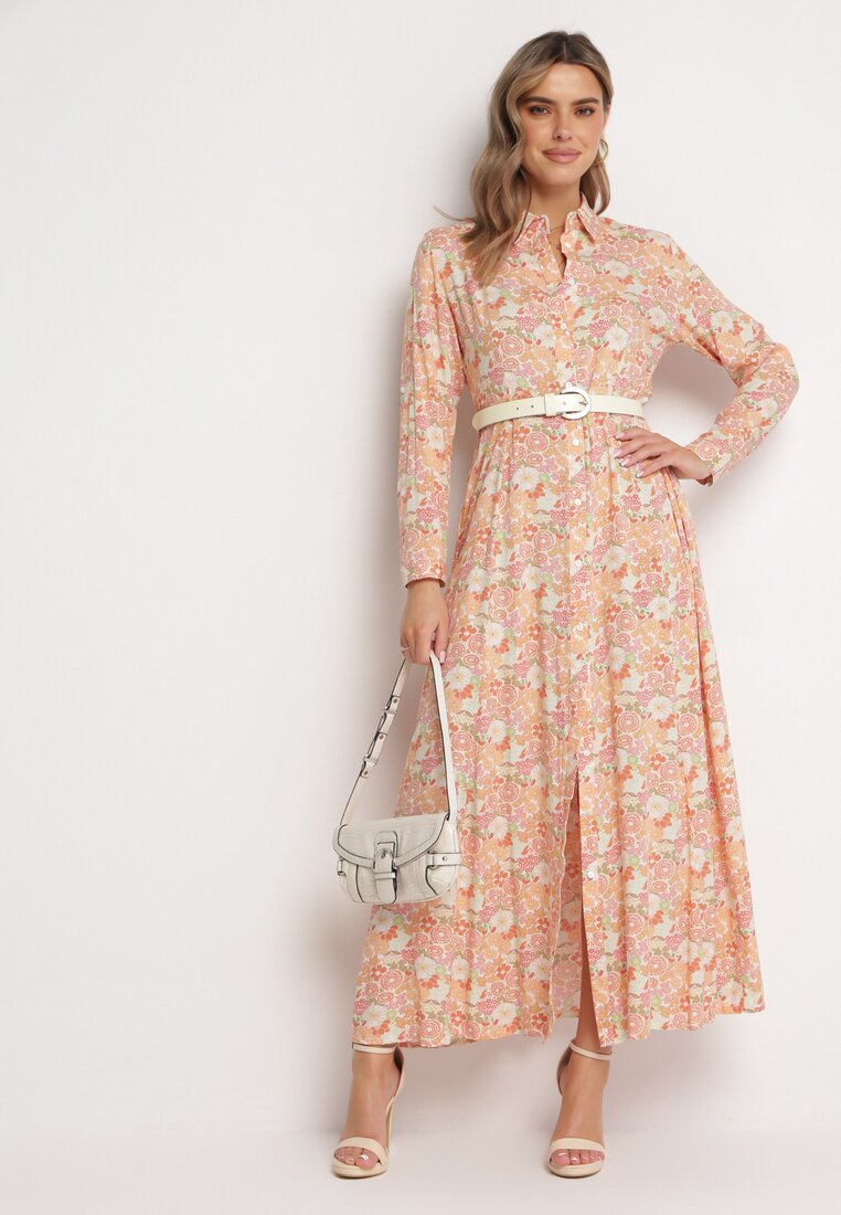 Rochie tip cămașă Portocaliu-Albă Fabillus