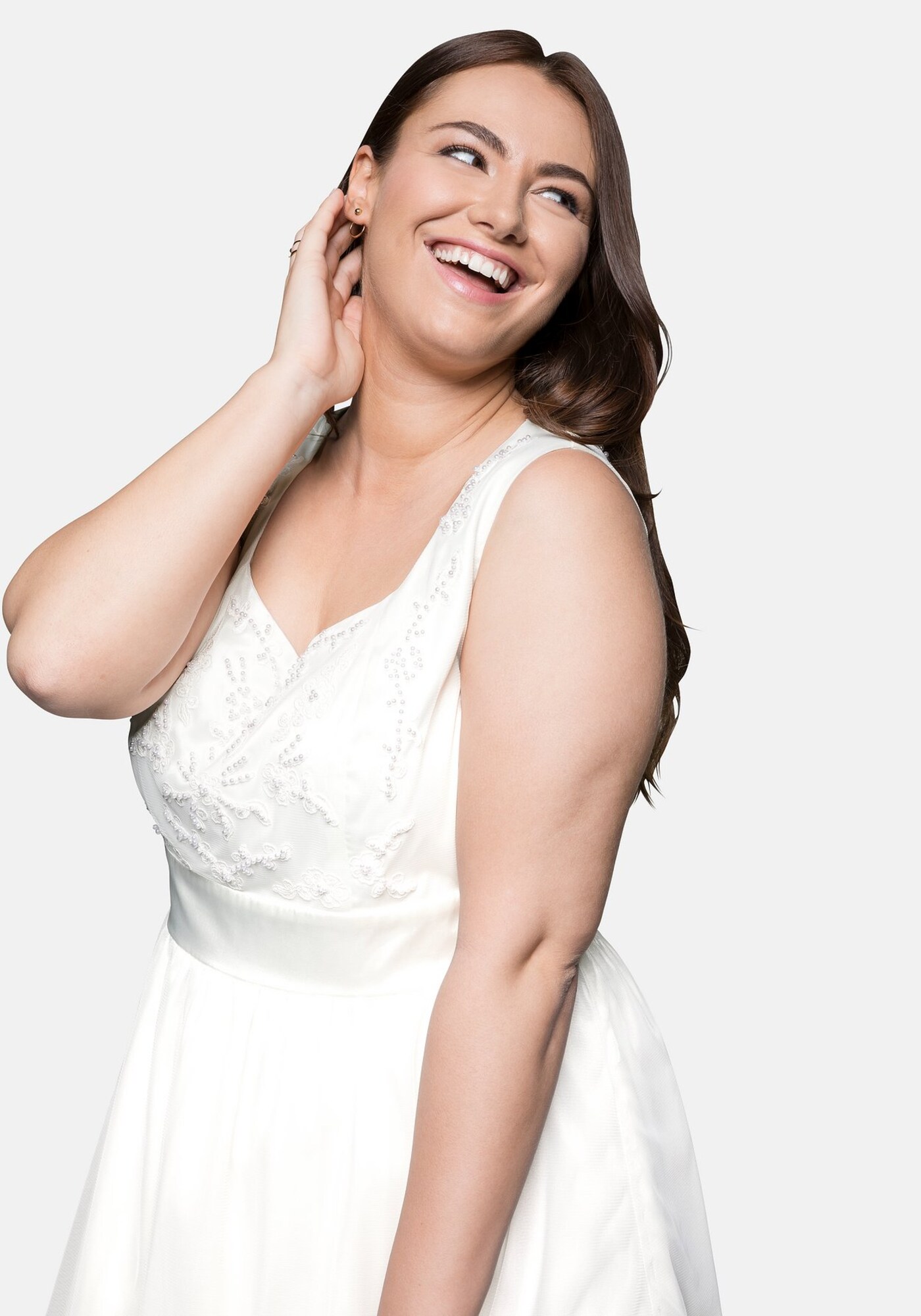 Design: Croi care avantajează silueta, Fermoar spate; Tip de închidere: Fermoar; Imprimeu: Monocrom; Tipul de susținere: Bretele late; Detalii: Broderie, Drapat, Perle; Detalii: Cusături ton în ton; Lungimea: Lungime 3/4; Croi: Croi mulat; Lungime mâneci: Fără mâneci