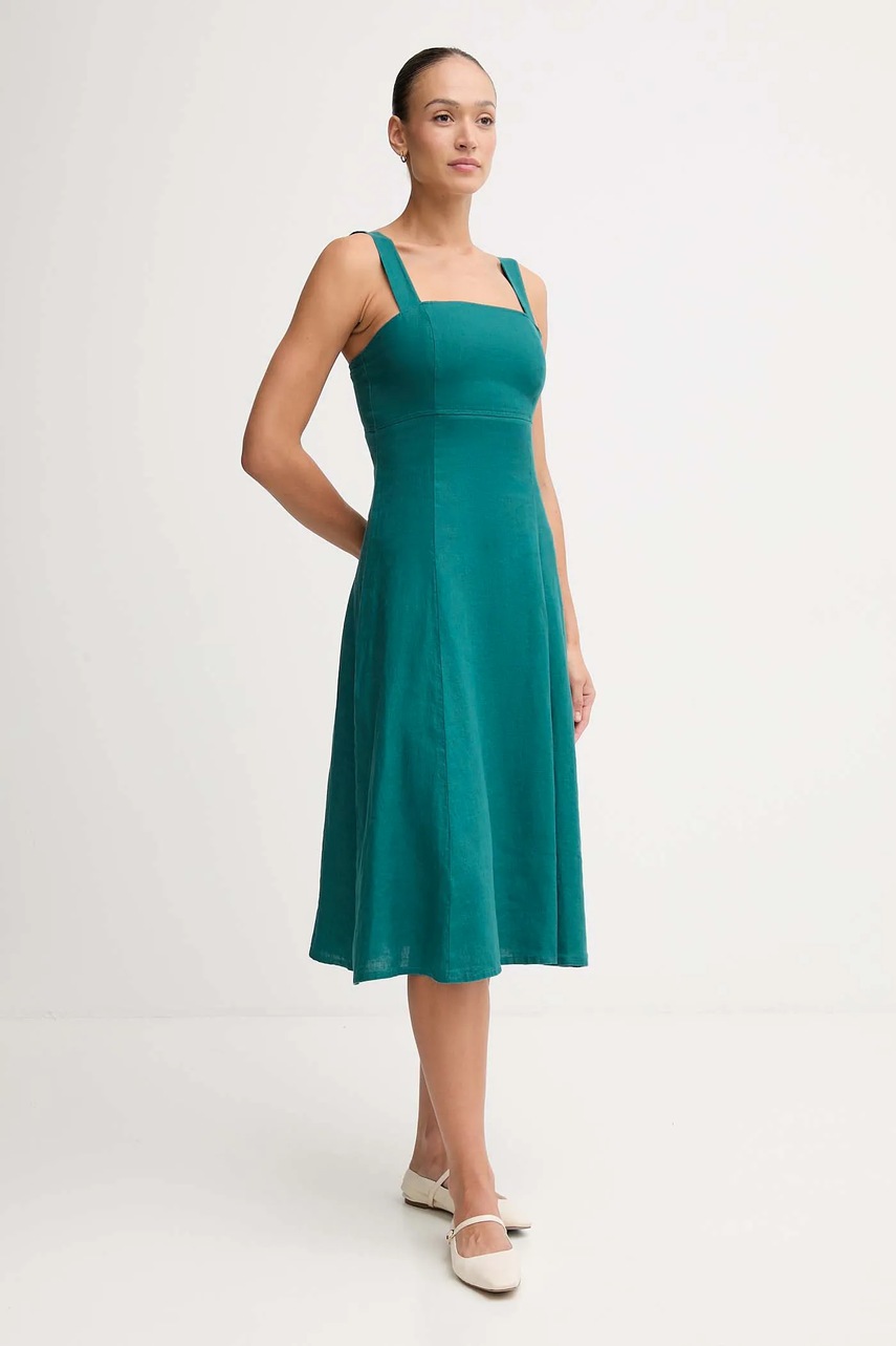 United Colors of Benetton rochie din in culoarea verde, midi, evazați, 4AGHDV0AG