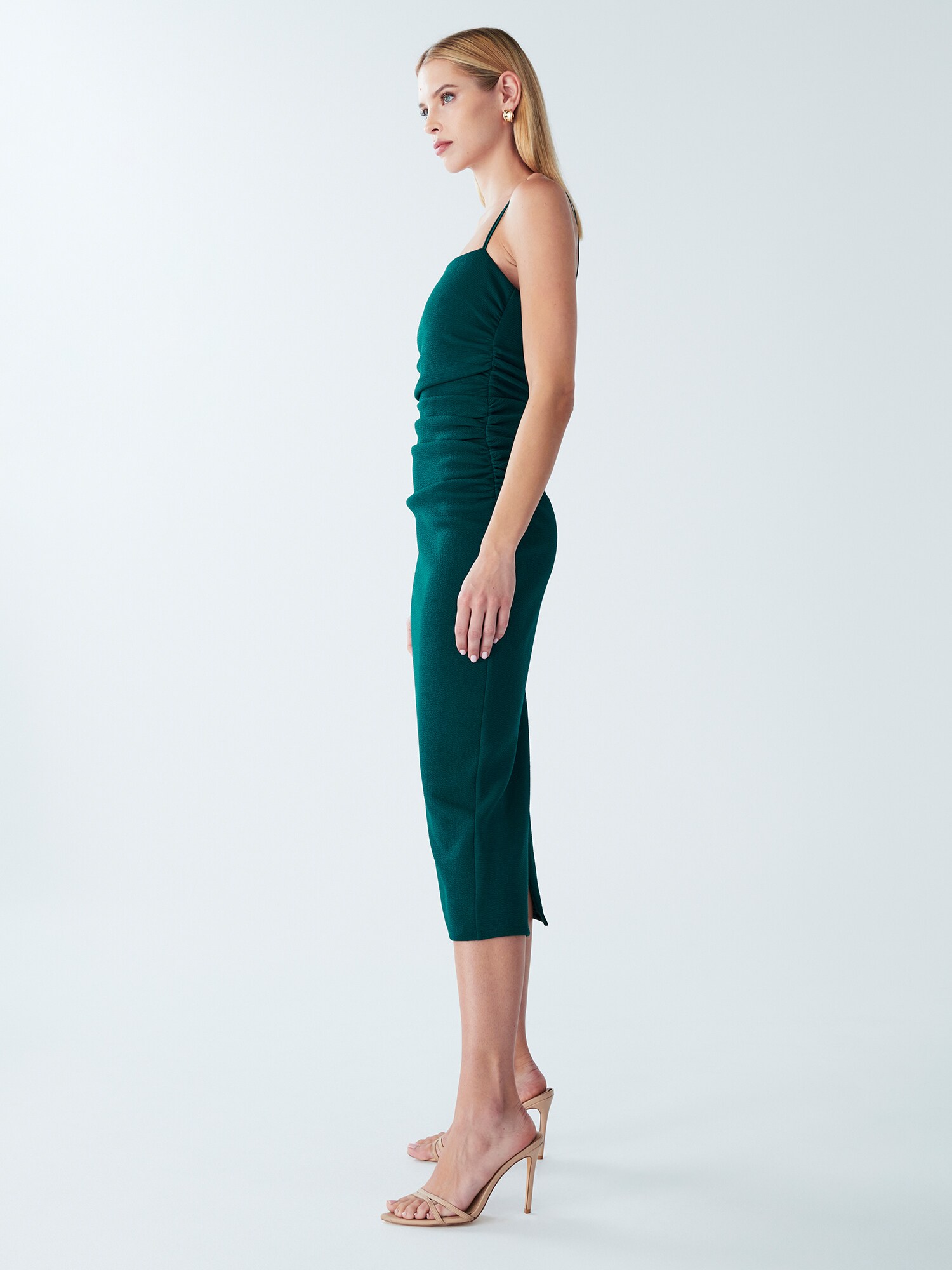 Design: Tiv/ margine tighelită, Șliț la spate; Tip de închidere: Fermoar; Decolteu: Decolteu pătrat; Imprimeu: Monocrom; Detalii: Drapat; Detalii: Suprafață structurată, Cusături ton în ton; Lungimea: Lungime 3/4; Croi: Mulat; Croi: Croi ce avantajează silueta; Lungime mâneci: Fără mâneci