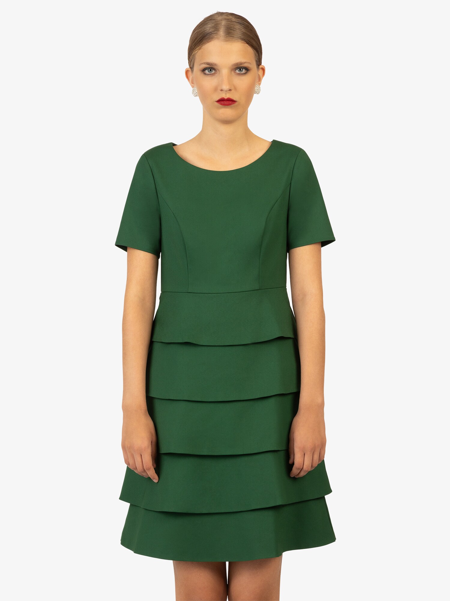 Întregește-ți garderoba cu rochia de cocktail verde închis de la Kraimod, o alegere rafinată care transformă orice ocazie într-un moment de neuitat. Designul său cu mai multe straturi îți va oferi un aer elegant, în timp ce volanele delicate adaugă un strop de feminitate. Fie că participi la o petrecere de cocktail sau la o cină sofisticată, decolteul rotund și croiul normal îți vor evidenția silueta, garantând confortul și stilul tău. Fabricată din bumbac de calitate superioară, rochia se închide cu un fermoar practic, asigurându-se că fiecare detaliu este perfect. Folosește această rochie monocromă, cu cusături ton în ton, pentru a-ți crea ținute memorabile și sofisticate. Nu mai aștepta! Transformă-te în centrul atenției și adaugă această rochie deosebită în colecția ta!