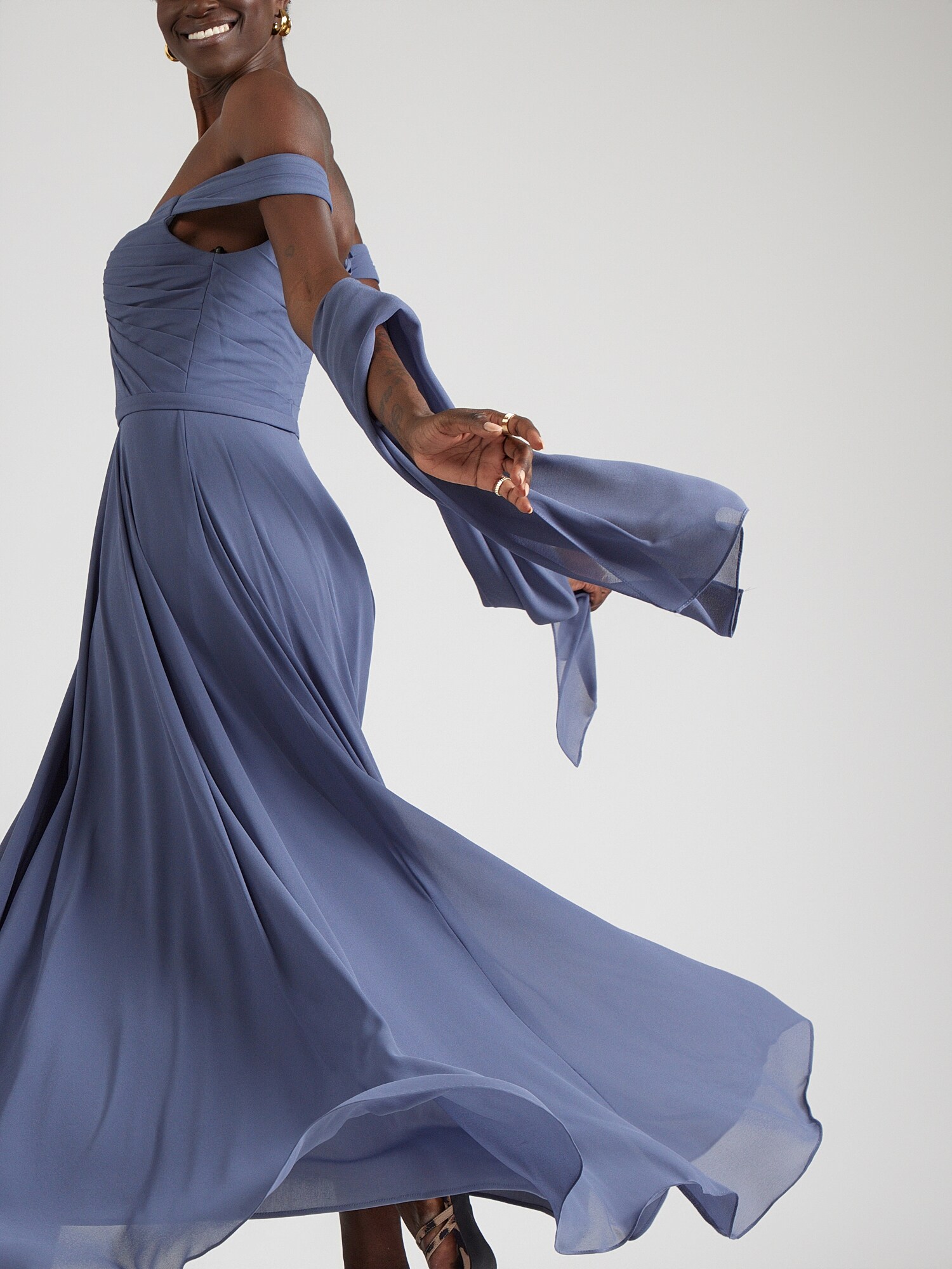 Design: Tiv/ margine tighelită, Fermoar spate, Decolteu adânc; Tip de închidere: Fermoar; Material: Șifon; Imprimeu: Monocrom; Tipul de susținere: Bretele late; Detalii: Pliuri, Drapat; Detalii: Cusături ton în ton, Material ușor, Material moale; Lungimea: Lung/maxi; Croi: Cambrat; Croi: Croi normal; Lungime mâneci: Fără mâneci