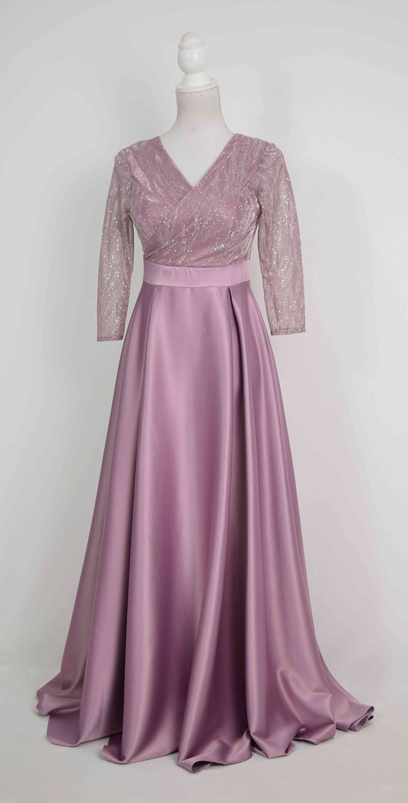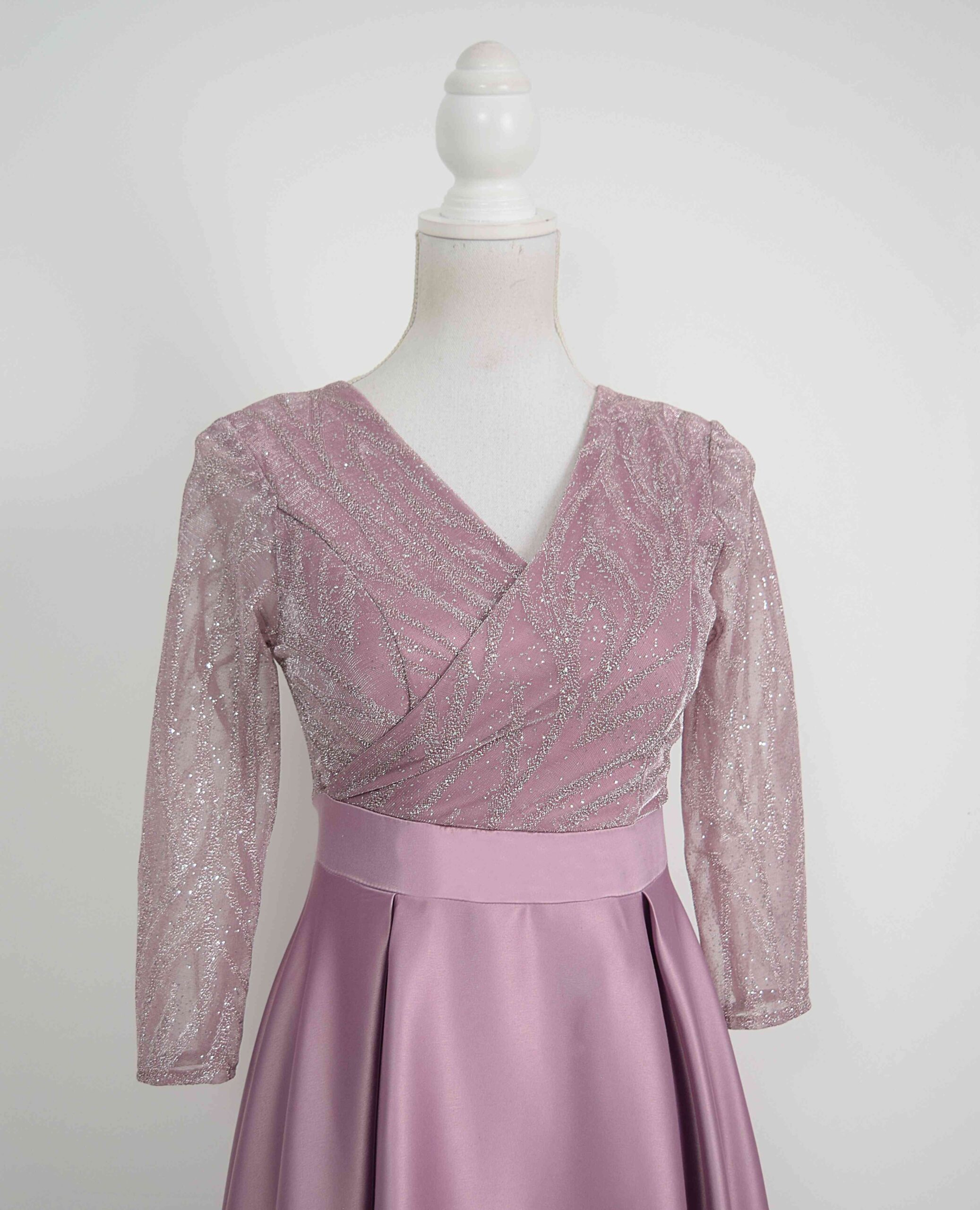 Rochie lunga de tafta roz-pruna si tiul cu gliter, o alegere magnifică pentru femeile care doresc să aducă o notă de feminitate și strălucire la orice eveniment special. Această rochie nu este doar un obiect vestimentar, ci o poveste a eleganței și a glamourului, potrivită pentru a fi nasa sau soacra la orice nuntă sau celebrare specială. Nuanța de roz-pruna pal adaugă un strop de dulceață și romantism, creând o armonie perfectă cu sclipirile subtile de gliter de pe tiul. Fiecare detaliu strălucitor aduce o notă de magie, transformând această rochie într-o capodoperă a eleganței moderne. Croiala rafinată evidențiază grația feminină într-un mod delicat și distins. Tiulul cu gliter adaugă volum și textură, creând un efect uimitor de senzație și mișcare. Decolteul și spatele decupat adaugă un aer îndrăzneț, menit să sublinieze frumusețea naturală. Această rochie lunga de tafta roz-pruna si tiul cu gliter, nu este doar o piesă de îmbrăcăminte, ci o declarație de stil și individualitate. Comandă acum și descoperă cum poți deveni protagonista oricărui eveniment, strălucind în rochia care îți pune în evidență personalitatea și farmecul. Cu livrarea noastră rapidă și atenția noastră la detalii, vei primi o creație vestimentară ce te va transforma într-o prezență strălucitoare, gata să îți marcheze fiecare moment special.