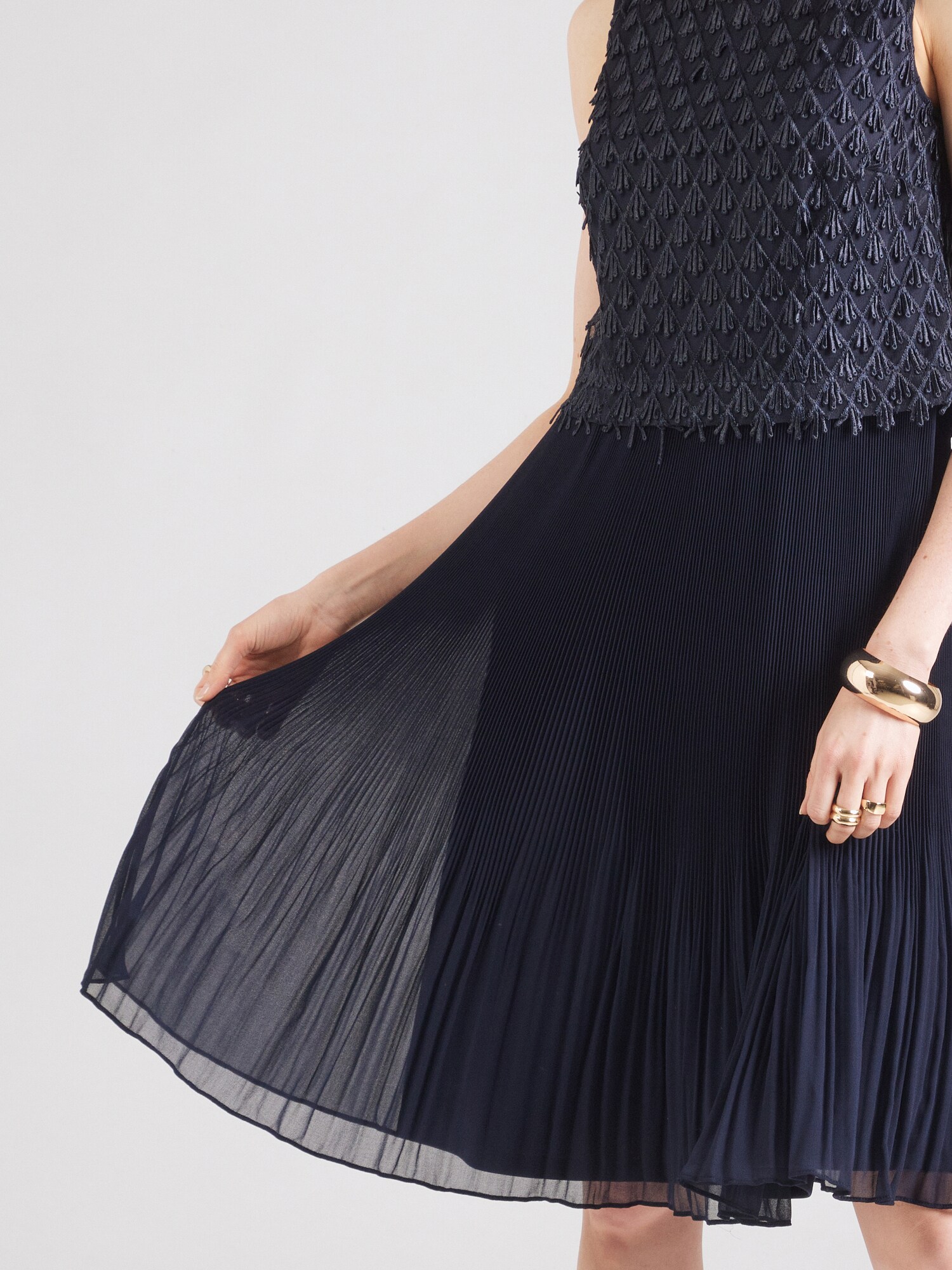 Design: Cu furou, Fermoar spate; Tip de închidere: Fermoar; Decolteu: Decolteu rotund; Imprimeu: Monocrom; Tipul de susținere: Bretele late; Detalii: Drapat, Pliseu; Detalii: Cusături ton în ton, Material curgător; Lungimea: Până la genunchi; Croi: Croi normal; Lungime mâneci: Fără mâneci
