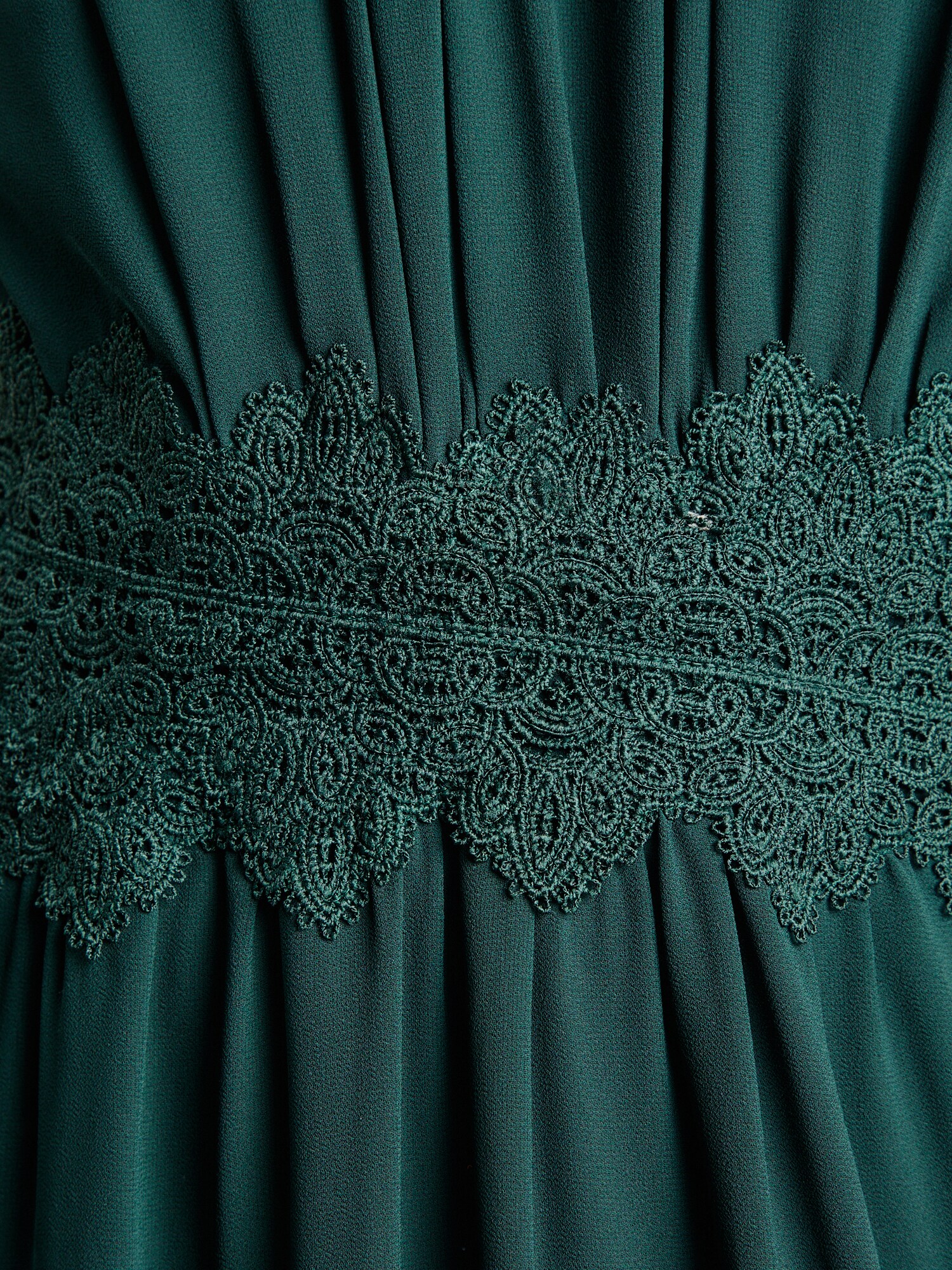 Îmbracă-te în eleganță cu rochia de seară VILA în nuanța sofisticată de verde închis, o alegere perfectă pentru momentele tale speciale. Această rochie îmbină cu măiestrie un design minimalist și detalii rafinate, incluzând un decolteu rotund și umerii goi, pentru un look seducător și feminin. Fermoarul discret și croiul lejer asigură confortul necesar indiferent de ocazie, în timp ce dantela delicată și decupajele ingenioase adaugă un strop de originalitate. Fabricată din material reciclat, această rochie nu doar că te face să arăți bine, dar contribuie și la protejarea mediului. Alege să strălucești cu stil și responsabilitate – poartă rochia VILA și transformă fiecare moment într-o amintire de neuitat! Comand-o acum și fii vedeta serii!