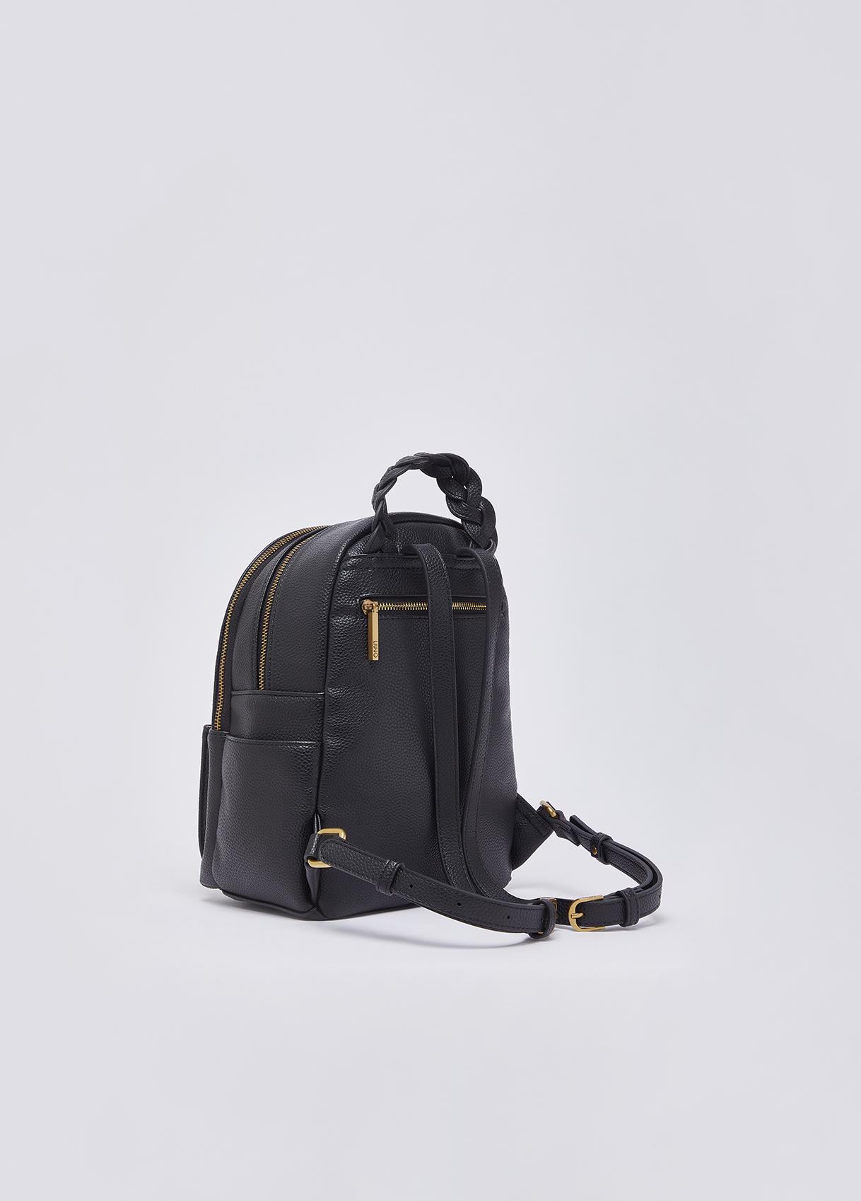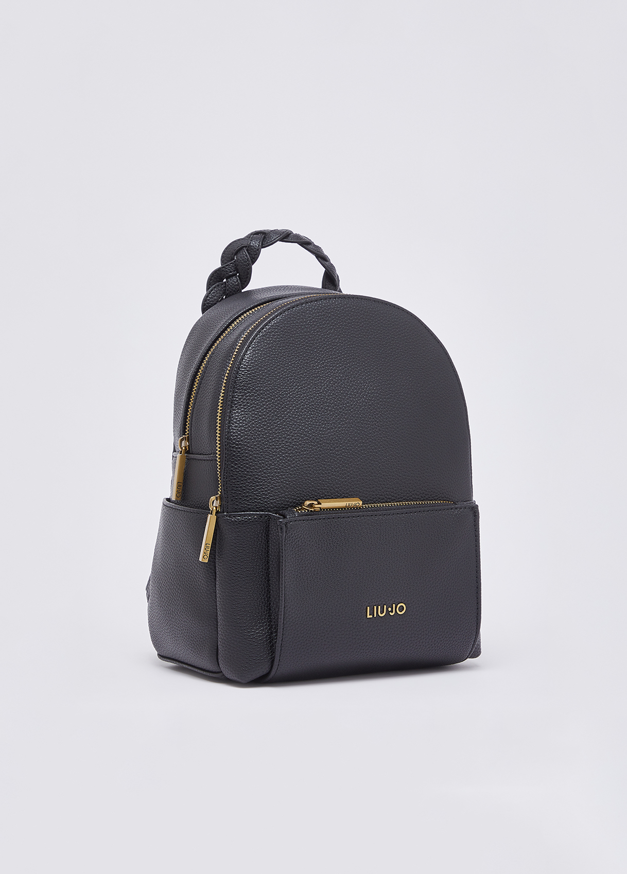 Measurements: 30 x 11 x 22 cm Women’s backpack Centre compartment Front pocket Lining Logo lettering Braided handle Adjustable shoulder straps Liu Jo Better product