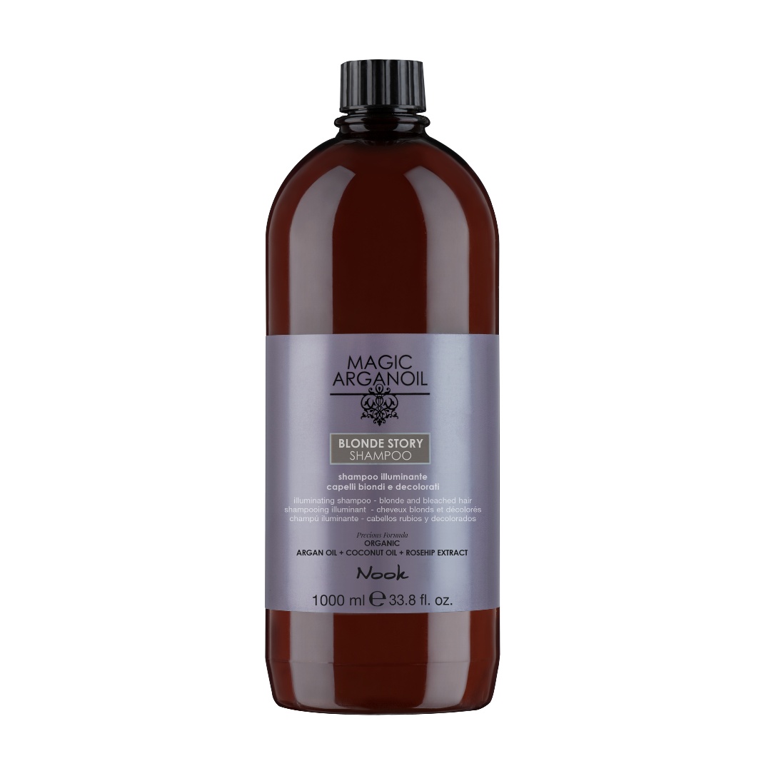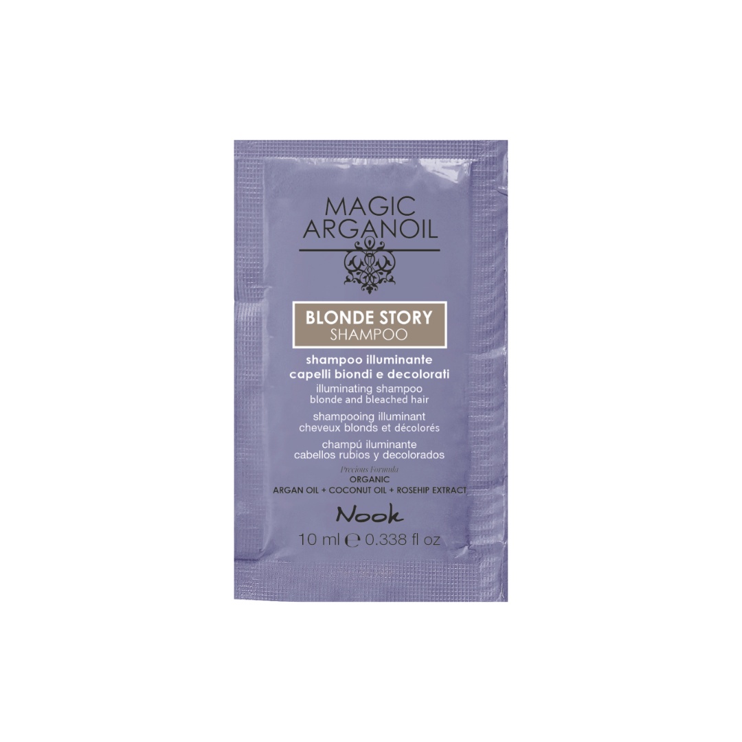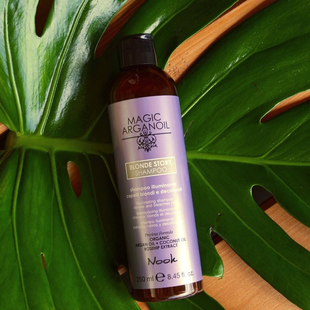 Îngrijirea perfectă pentru părul blond! Nook Magic ArganOil Blonde Story este șamponul iluminator ideal pentru părul blond, decolorat sau cu șuvițe. Formulat cu ulei de argan, ulei de cocos și extract de măceș, acest șampon curăță delicat și neutralizează reflexiile galbene, lăsând părul strălucitor, hidratat și sănătos. Beneficii Cheie: Neutralizează Reflexiile Galbene: Corectează nuanțele galbene și evidențiază strălucirea naturală a părului blond. Hidratare Intensivă: Uleiul de argan și extractul de măceș hrănesc părul în profunzime, prevenind uscarea. Elasticitate și Netezire: Îmbunătățește elasticitatea părului și îl face mai neted și mai ușor de coafat. Strălucire Îmbunătățită: Adaugă un luciu intens și natural, redând vitalitatea părului blond și gri. Ingrediente Naturale: Conține până la 95% ingrediente de origine naturală, ideal pentru un stil de viață vegan. Protecție Antioxidantă: Uleiul de argan protejează împotriva radicalilor liberi și agresiunilor externe. Ingrediente Active: Ulei de Argan: Protejează și regenerează fibra capilară, îmbunătățind hidratarea și strălucirea părului. Ulei de Cocos: Hidratare profundă, întărește părul și îmbunătățește elasticitatea, prevenind ruperea. Extract de Măceș: Bogat în vitamina C, hrănește și protejează părul, îmbunătățind elasticitatea și strălucirea acestuia. Mod de Utilizare: Aplicați șamponul pe părul umed și masați ușor pentru a forma o spumă fină. Lăsați să acționeze câteva secunde pentru a permite ingredientelor să curățe și să hrănească părul. Clătiți cu apă din abundență. Pentru rezultate optime, folosiți-l împreună cu alte produse din gama Blonde Story . Recomandat Pentru: Părul blond, decolorat, cu șuvițe sau gri. Oricine dorește un păr strălucitor, hidratat și protejat pe termen lung. De Ce Nook Magic ArganOil Blonde Story Șampon? Acest șampon iluminator este alegerea ideală pentru părul blond sau gri, oferind nu doar neutralizarea reflexiilor galbene, ci și o hidratare și protecție intensă, lăsând părul strălucitor și sănătos. Cu o formulă naturală, șamponul Blonde Story este un must-have pentru îngrijirea părului blond! Transformă-ți rutina de îngrijire a părului cu Nook Magic ArganOil Blonde Story Șampon Iluminator. Neutralizează reflexiile galbene, hidratează și adaugă strălucire părului tău blond, oferindu-i protecție și un aspect sănătos pe termen lung.