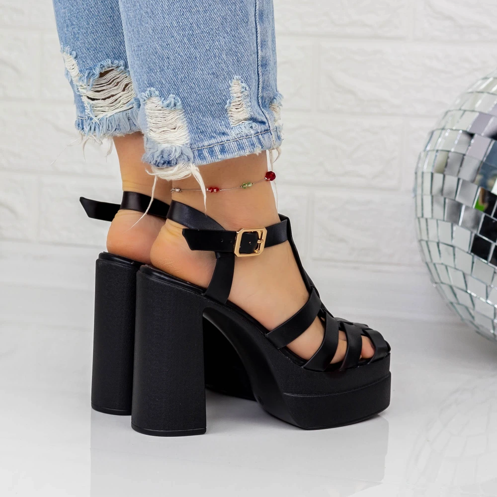 Sandale Dama cu Toc gros si Platforma TN-39 Negru Botinelli